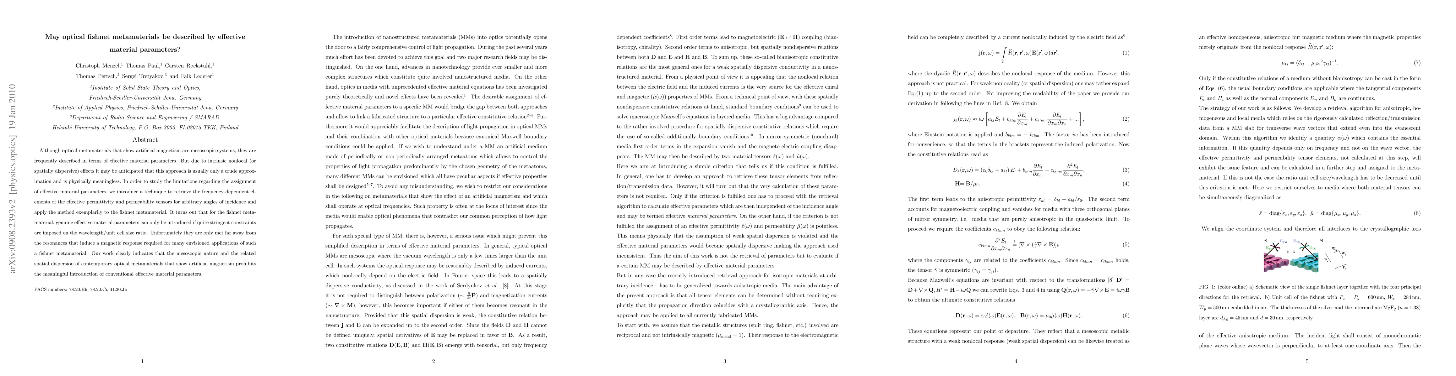 Although optical metamaterials that show artificial magnetism are mesoscopic systems, they are frequently described in terms of effective material parameters. But due to intrinsic nonlocal (or spatially dispersive) effects it may be anticipated that this approach is usually only a crude approximation and is physically meaningless. In order to study the limitations regarding the assignment of effective material parameters, we present a technique to retrieve the frequency-dependent elements of the effective permittivity and permeability tensors for arbitrary angles of incidence and apply the method exemplarily to the fishnet metamaterial. It turns out that for the fishnet metamaterial, genuine effective material parameters can only be introduced if quite stringent constraints are imposed on the wavelength/unit cell size ratio. Unfortunately they are only met far away from the resonances that induce a magnetic response required for many envisioned applications of such a fishnet metamaterial. Our work clearly indicates that the mesoscopic nature and the related spatial dispersion of contemporary optical metamaterials that show artificial magnetism prohibits the meaningful introduction of conventional effective material parameters.