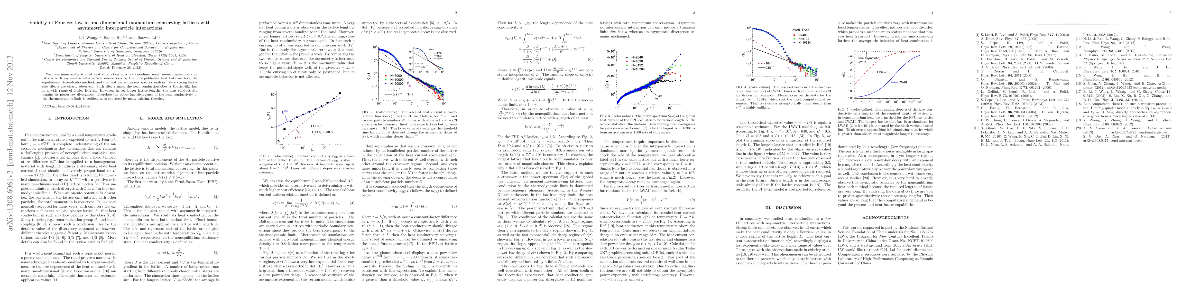 We have numerically studied heat conduction in a few one-dimensional momentum-conserving lattices with asymmetric interparticle interactions by the nonequilibrium heat bath method, the equilibrium Green-Kubo method, and the heat current power spectra analysis. Very strong finite-size effects are clearly observed. Such effects make the heat conduction obey a Fourier-like law in a wide range of lattice lengths. However, in yet longer lattice lengths, the heat conductivity regains its power-law divergence. Therefore the power-law divergence of the heat conductivity in the thermodynamic limit is verified, as is expected by many existing theories.