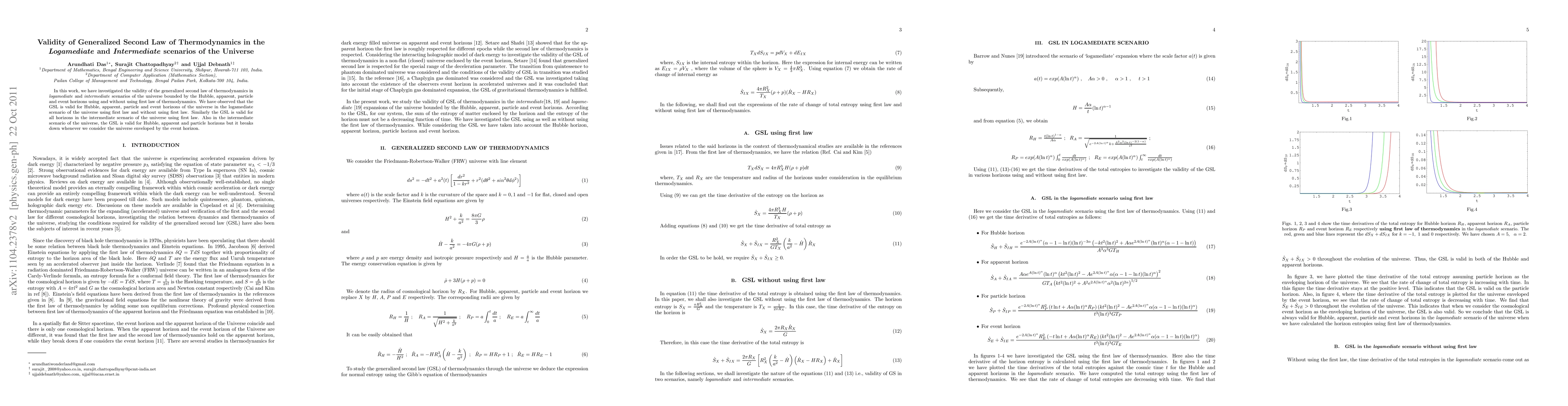 In this work, we have investigated the validity of the generalized second law of thermodynamics in logamediate and intermediate scenarios of the universe bounded by the Hubble, apparent, particle and event horizons using and without using first law of thermodynamics. We have observed that the GSL is valid for Hubble, apparent, particle and event horizons of the universe in the logamediate scenario of the universe using first law and without using first law. Similarly the GSL is valid for all horizons in the intermediate scenario of the universe using first law. Also in the intermediate scenario of the universe, the GSL is valid for Hubble, apparent and particle horizons but it breaks down whenever we consider the universe enveloped by the event horizon.