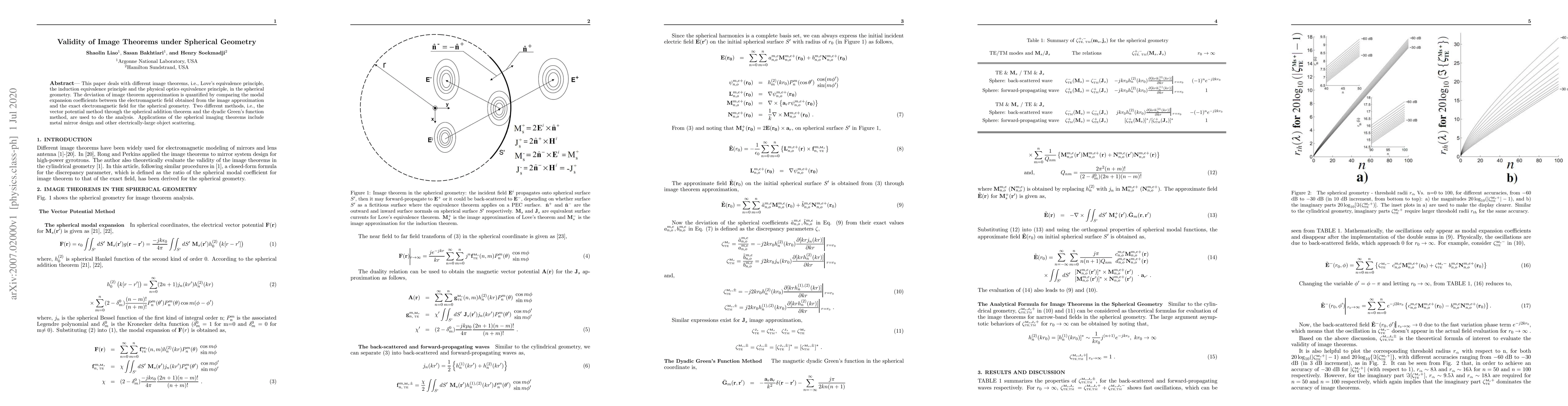 This paper examines the validity of various image theorems under spherical geometry, quantifying deviations using modal expansion coefficients and comparing electromagnetic fields from image approximations and exact solutions. It employs vector potential and dyadic Green's function methods, with applications in metal mirror design and scattering of large objects.