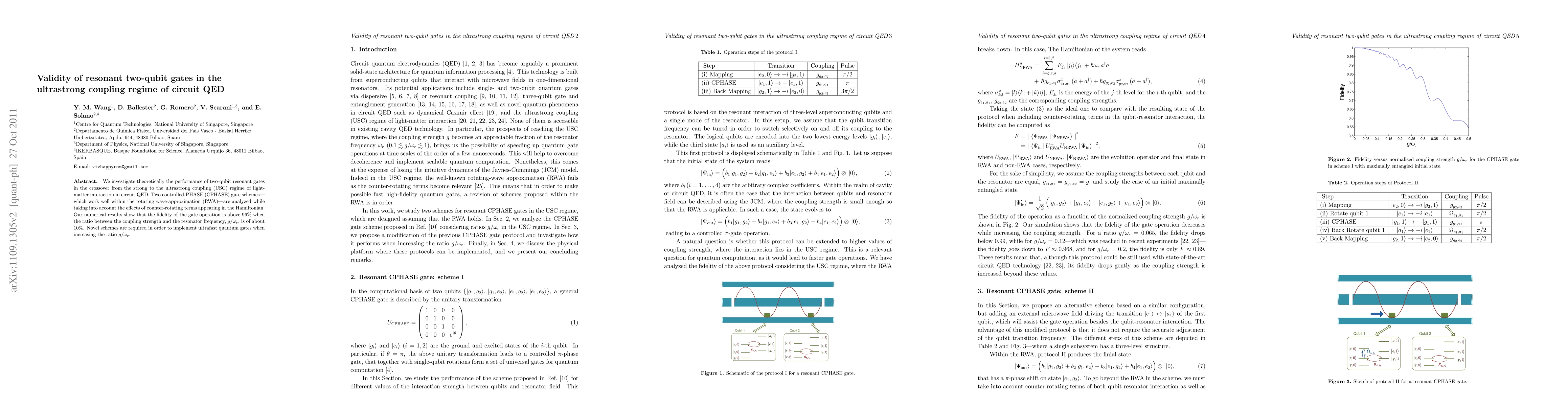 We investigate theoretically the performance of two-qubit resonant gates in the crossover from the strong to the ultrastrong coupling (USC) regime of light-matter interaction in circuit QED. Two controlled-PHASE gate schemes---that works well within the rotating wave-approximation (RWA)---are analyzed while taking into account the effects of counter-rotating terms appearing in the Hamiltonian. Our numerical results show that the fidelity of the gate operation is above 96 % when the ratio between the coupling strength and the resonator frequency, g/\omega_r, is of about 10 %. Novel schemes are required in order to implement ultrafast quantum gates when increasing the ratio g/\omega_r.