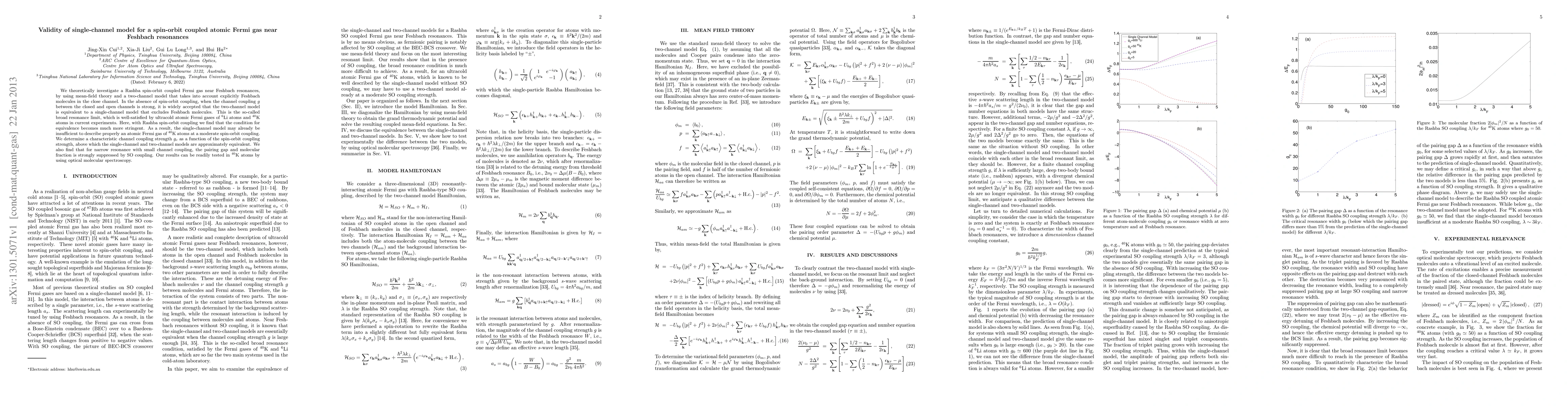 This paper explores the validity of a single-channel model for a spin-orbit coupled Fermi gas near Feshbach resonances, finding that the model's equivalence to a two-channel model becomes more stringent with spin-orbit coupling, particularly for $^{40}$K atoms. It identifies a critical coupling strength above which the two models can be considered equivalent.