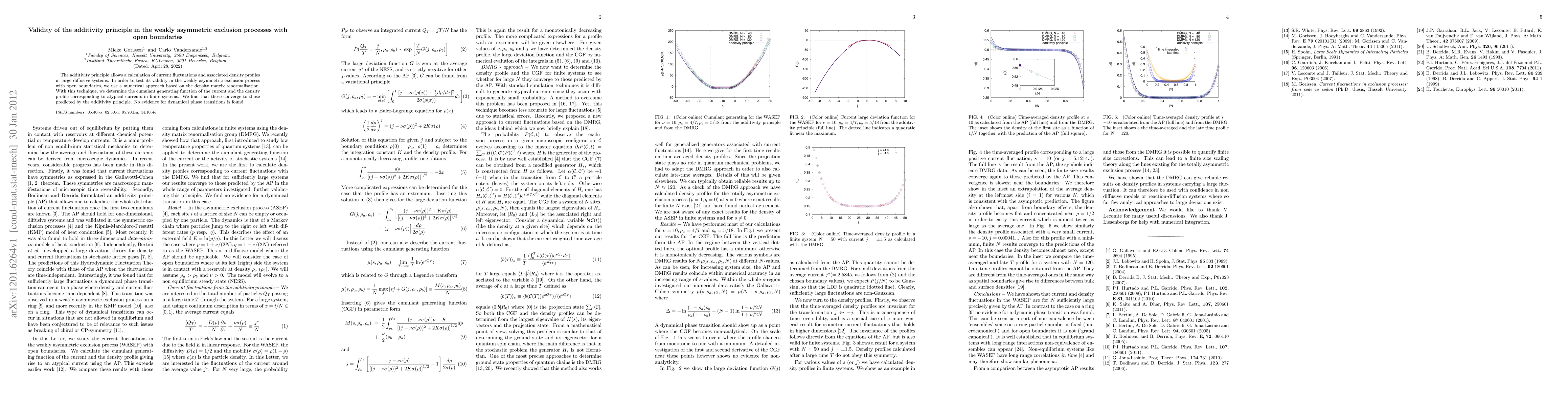 This paper tests the additivity principle in the weakly asymmetric exclusion process with open boundaries using numerical density matrix renormalisation. Results show convergence to predicted values, supporting the principle's validity without evidence of dynamical phase transitions.