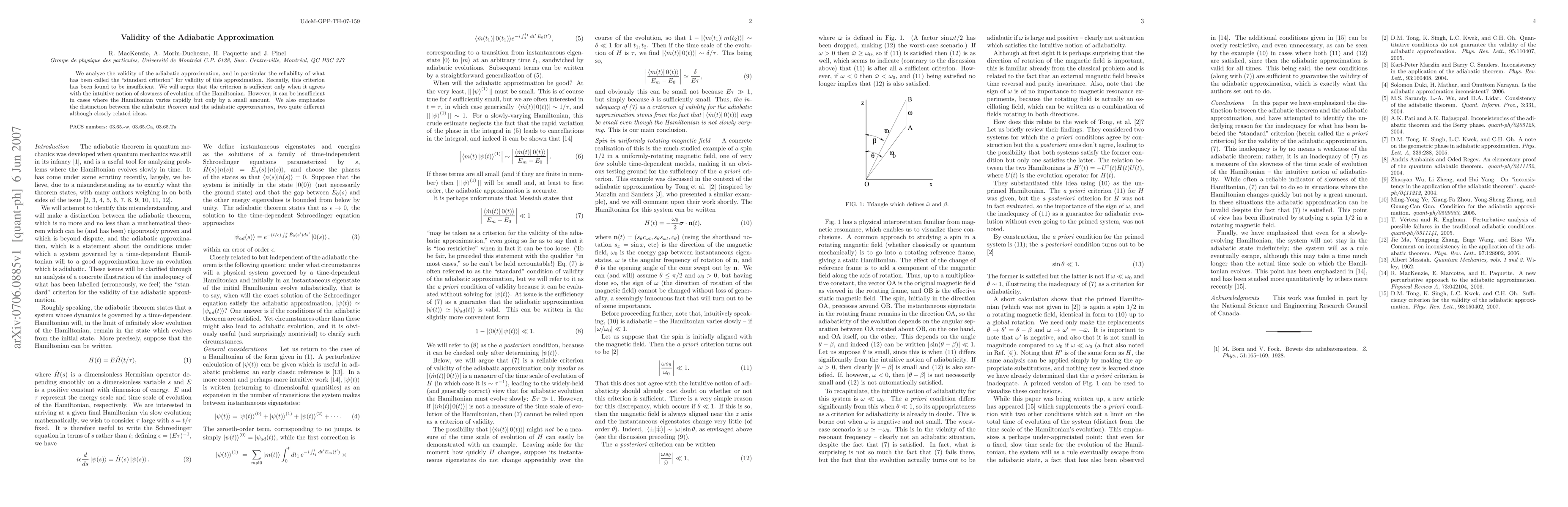 This paper critiques the "standard criterion" for the adiabatic approximation's validity, arguing it is insufficient when the Hamiltonian changes rapidly but slightly. It distinguishes between the adiabatic theorem and approximation, highlighting their differences.