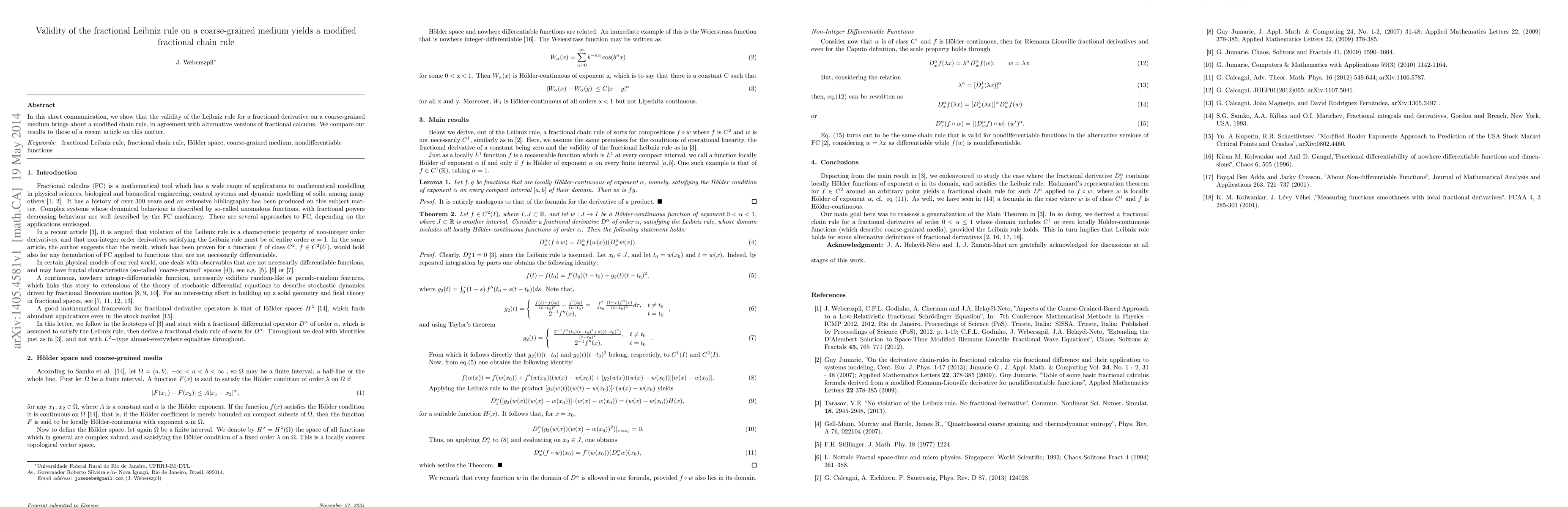 This paper demonstrates that applying the fractional Leibniz rule on a coarse-grained medium leads to a modified fractional chain rule, aligning with alternative fractional calculus formulations. The findings are compared and contrasted with a recent related study.