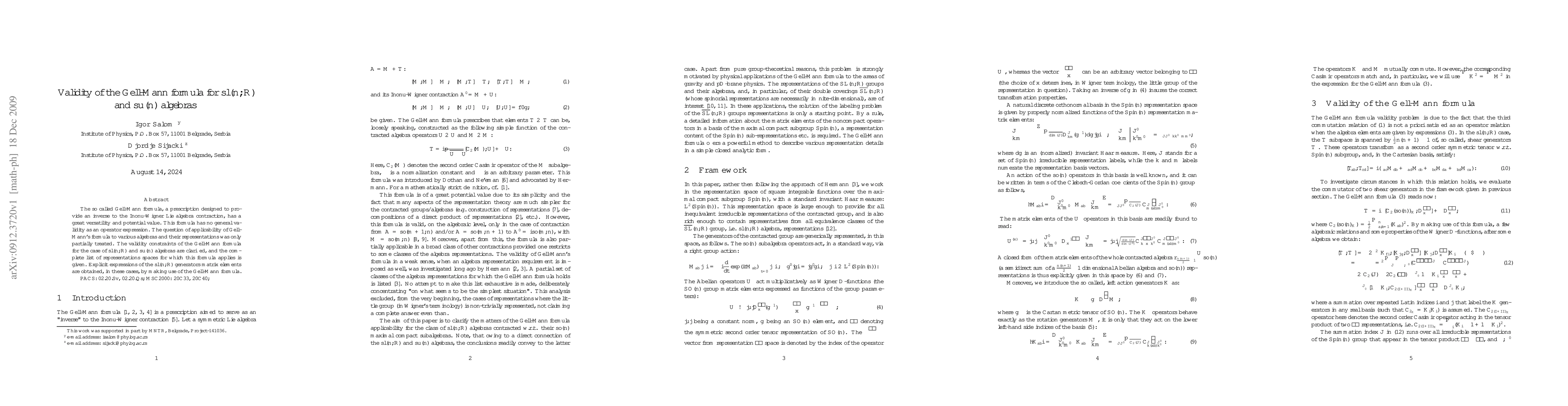 The Gell-Mann formula's validity for sl(n,R) and su(n) algebras has been clarified, providing a complete list of representations spaces where the formula applies.