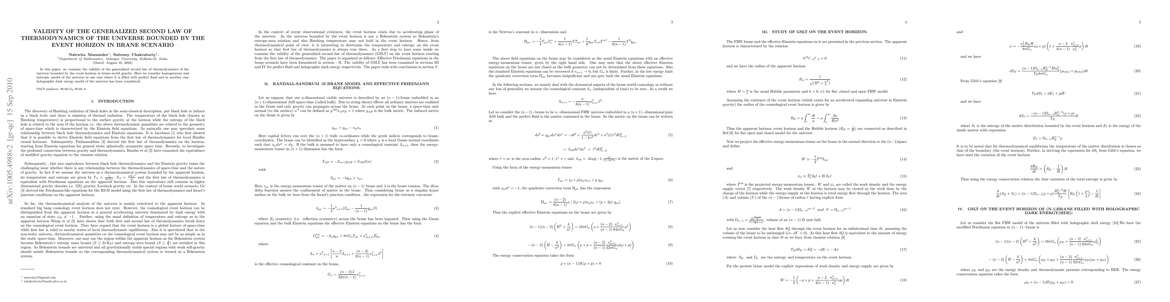 This paper investigates the generalized second law of thermodynamics (GSLT) in the context of brane-world gravity, examining two models: a perfect fluid universe and a holographic dark energy model, to determine their thermodynamic consistency. Specific conclusions are drawn for each scenario.
