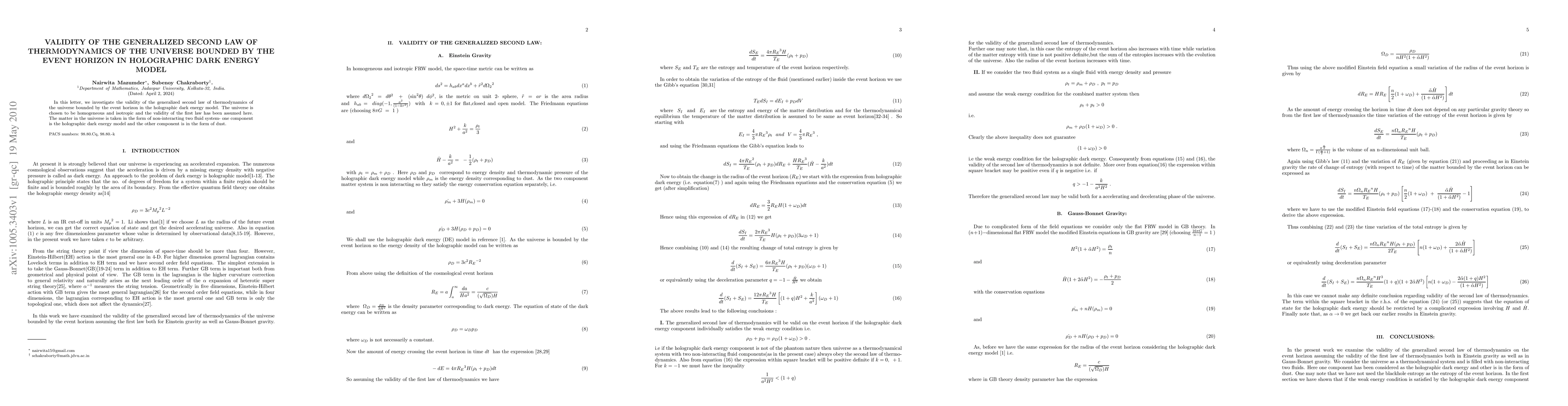 This paper explores the generalized second law of thermodynamics within the holographic dark energy model, examining a universe bounded by the event horizon and composed of a non-interacting two-fluid system, where one fluid is holographic dark energy and the other is dust. The study assumes the validity of the first law of thermodynamics.
