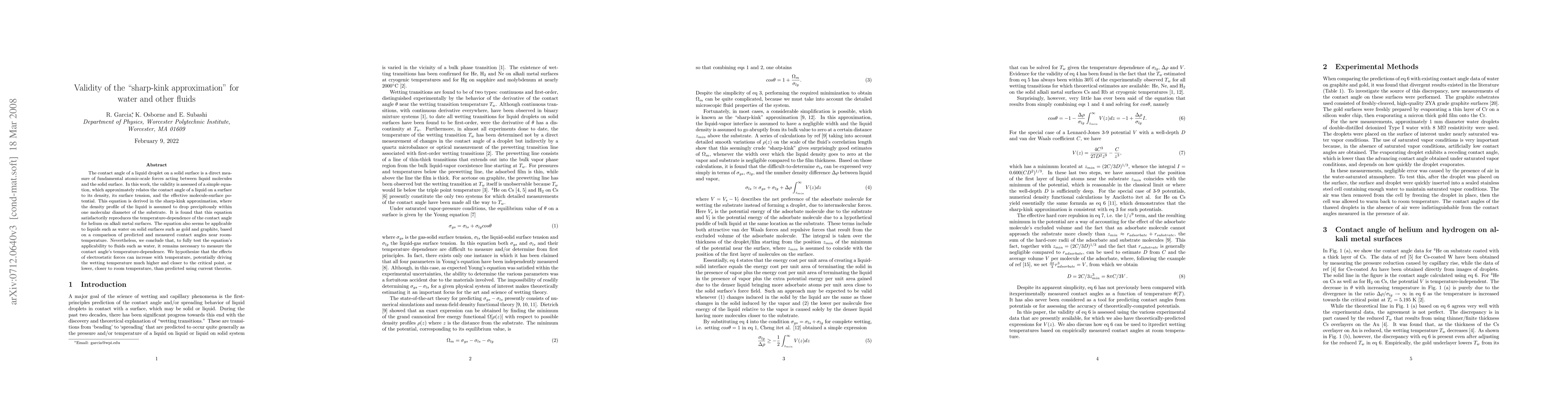 The contact angle of a liquid droplet on a solid surface is a direct measure of fundamental atomic-scale forces acting between liquid molecules and the solid surface. In this work, the validity is assessed of a simple equation, which approximately relates the contact angle of a liquid on a surface to its density, its surface tension, and the effective molecule-surface potential. This equation is derived in the sharp-kink approximation, where the density profile of the liquid is assumed to drop precipitously within one molecular diameter of the substrate. It is found that this equation satisfactorily reproduces the temperature-dependence of the contact angle for helium on alkali metal surfaces. The equation also seems be applicable to liquids such as water on solid surfaces such as gold and graphite, based on a comparison of predicted and measured contact angles near room-temperature. Nevertheless, we conclude that, to fully test the equation's applicability to fluids such as water, it remains necessary to measure the contact angle's temperature-dependence. We hypothesize that the effects of electrostatic forces can increase with temperature, potentially driving the wetting temperature much higher and closer to the critical point, or lower, closer to room temperature, than predicted using current theories.