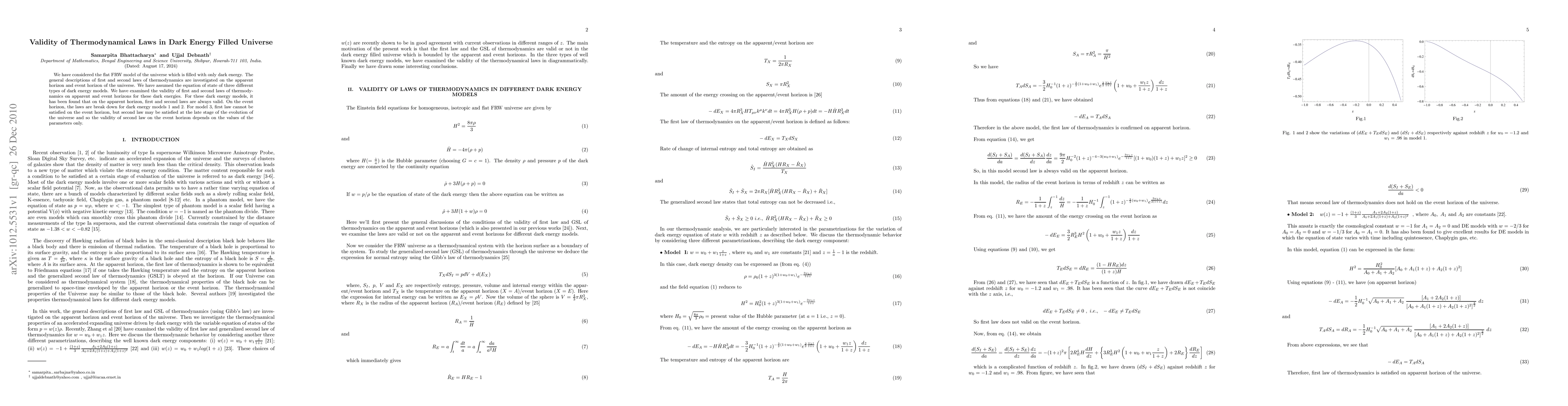 We have considered the flat FRW model of the universe which is filled with only dark energy. The general descriptions of first and second laws of thermodynamics are investigated on the apparent horizon and event horizon of the universe. We have assumed the equation of state of three different types of dark energy models. We have examined the validity of first and second laws of thermodynamics on apparent and event horizons for these dark energies. For these dark energy models, it has been found that on the apparent horizon, first and second laws are always valid. On the event horizon, the laws are break down for dark energy models 1 and 2. For model 3, first law cannot be satisfied on the event horizon, but second law may be satisfied at the late stage of the evolution of the universe and so the validity of second law on the event horizon depends on the values of the parameters only.