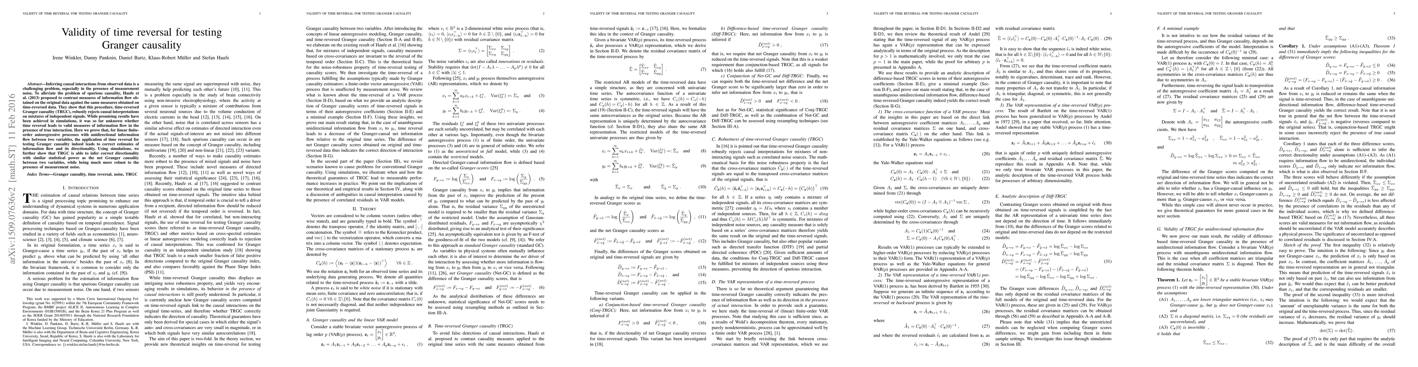 Inferring causal interactions from observed data is a challenging problem, especially in the presence of measurement noise. To alleviate the problem of spurious causality, Haufe et al. (2013) proposed to contrast measures of information flow obtained on the original data against the same measures obtained on time-reversed data. They show that this procedure, time-reversed Granger causality (TRGC), robustly rejects causal interpretations on mixtures of independent signals. While promising results have been achieved in simulations, it was so far unknown whether time reversal leads to valid measures of information flow in the presence of true interaction. Here we prove that, for linear finite-order autoregressive processes with unidirectional information flow, the application of time reversal for testing Granger causality indeed leads to correct estimates of information flow and its directionality. Using simulations, we further show that TRGC is able to infer correct directionality with similar statistical power as the net Granger causality between two variables, while being much more robust to the presence of measurement noise.