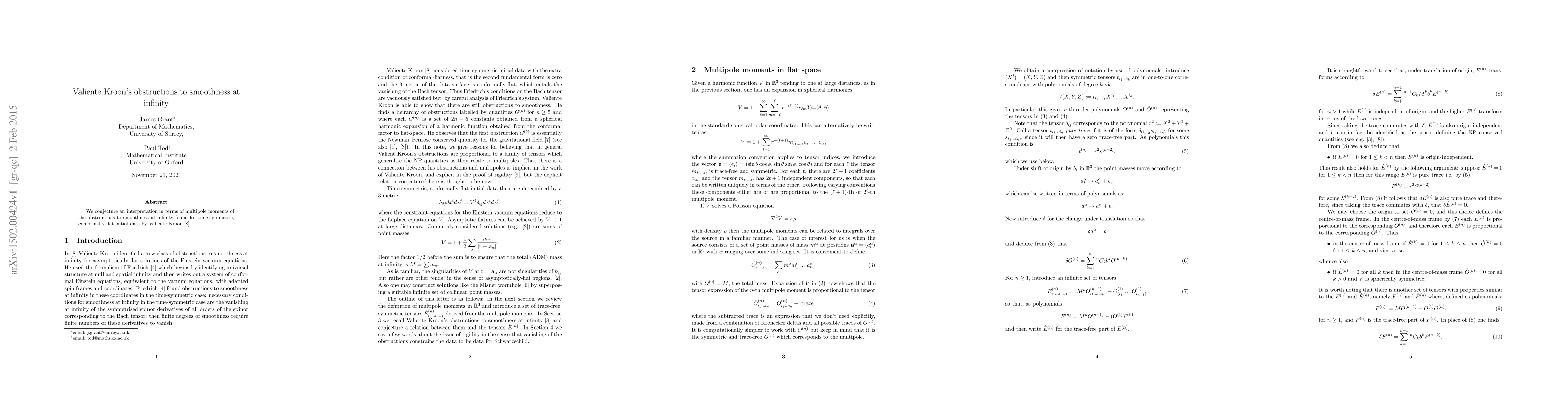 We conjecture an interpretation in terms of multipole moments of the obstructions to smoothness at infinity found for time-symmetric, conformally-flat initial data by Valiente Kroon (Comm. Math. Phys. 244 (2004), 133-156).