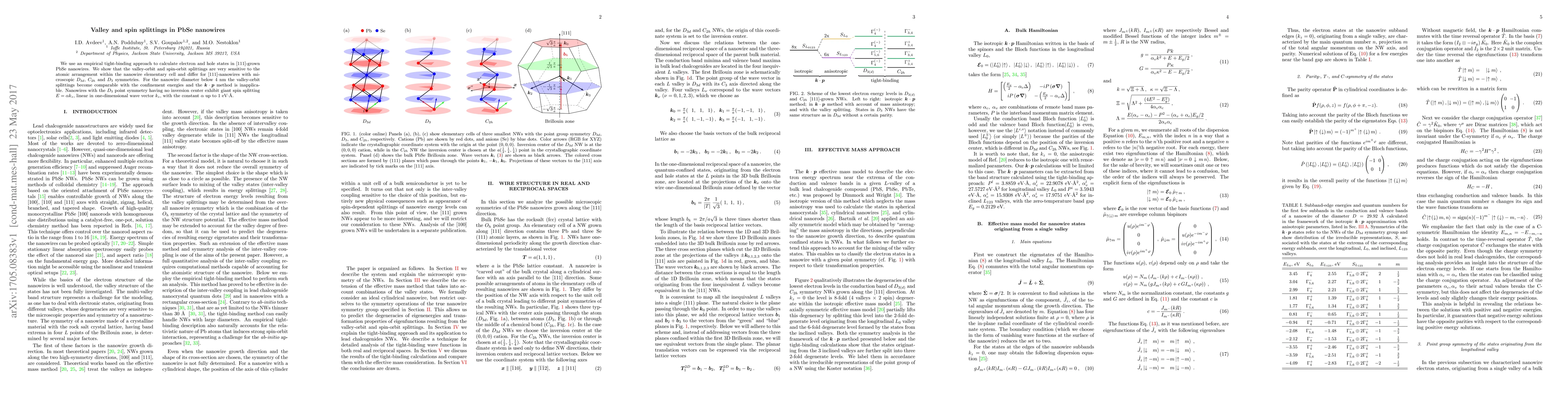 We use an empirical tight-binding approach to calculate electron and hole states in [111]-grown PbSe nanowires. We show that the valley-orbit and spin-orbit splittings are very sensitive to the atomic arrangement within the nanowire elementary cell and differ for [111]-nanowires with microscopic $D_{3d}$, $C_{2h}$ and $D_{3}$ symmetries. For the nanowire diameter below 4 nm the valley-orbit splittings become comparable with the confinement energies and the $\boldsymbol{k}\cdot\boldsymbol{p}$ method is inapplicable. Nanowires with the $D_{3}$ point symmetry having no inversion center exhibit giant spin splitting $E = \alpha k_z$, linear in one-dimensional wave vector $k_z$, with the constant $\alpha$ up to 1 eV$\cdot$\AA.