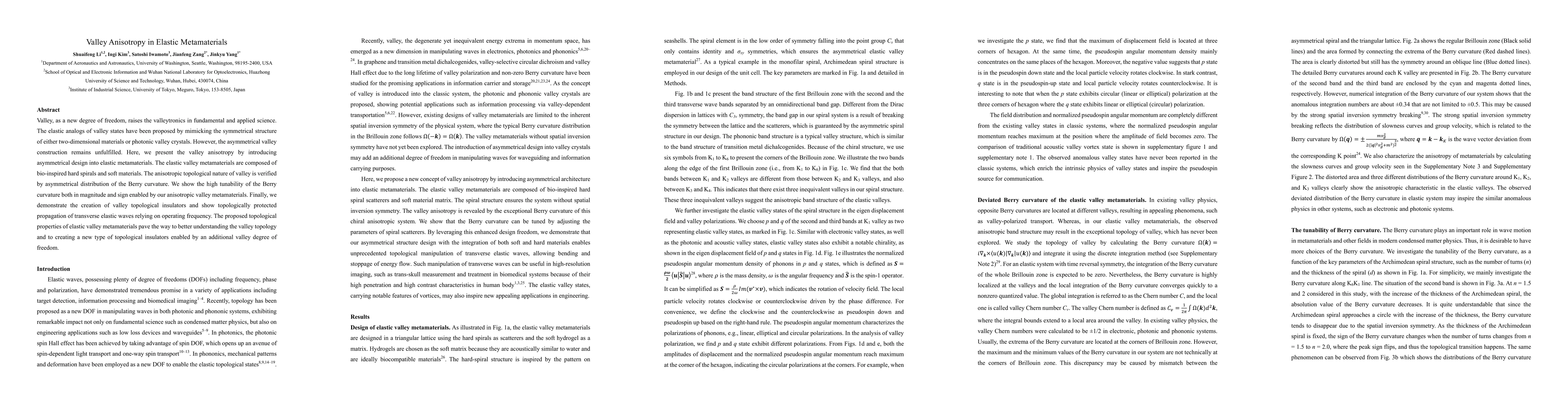 This paper introduces asymmetrical elastic metamaterials that exhibit valley anisotropy, utilizing bio-inspired hard spirals and soft materials. The study demonstrates high tunability of the Berry curvature and topologically protected wave propagation, paving the way for new valley topological insulators.