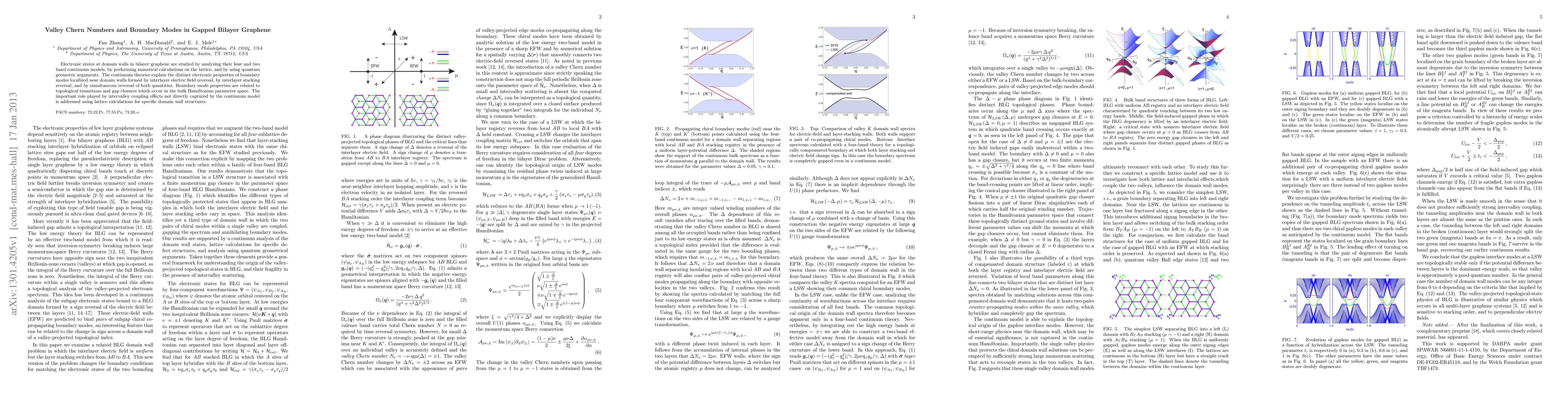 Electronic states at domain walls in bilayer graphene are studied by analyzing their four and two band continuum models, by performing numerical calculations on the lattice, and by using quantum geometric arguments. The continuum theories explain the distinct electronic properties of boundary modes localized near domain walls formed by interlayer electric field reversal, by interlayer stacking reversal, and by simultaneous reversal of both quantities. Boundary mode properties are related to topological transitions and gap closures which occur in the bulk Hamiltonian parameter space. The important role played by intervalley coupling effects not directly captured by the continuum model is addressed using lattice calculations for specific domain wall structures.