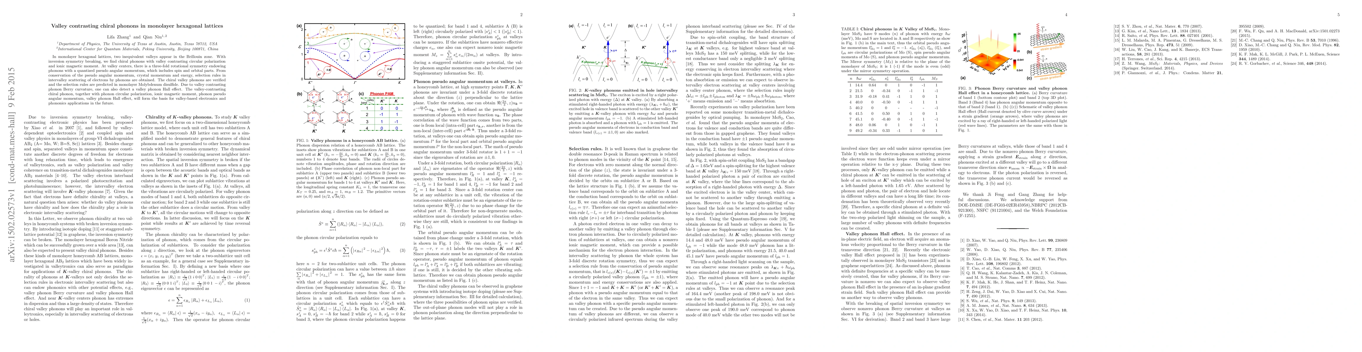 This paper explores chiral phonons in monolayer hexagonal lattices, particularly in Molybdenum disulfide, demonstrating valley contrasting circular polarization, ionic magnetic moment, and pseudo angular momentum. The study derives selection rules for intervalley electron scattering and predicts a valley phonon Hall effect, proposing these phenomena as foundational for future valley-based electronics and phononics.