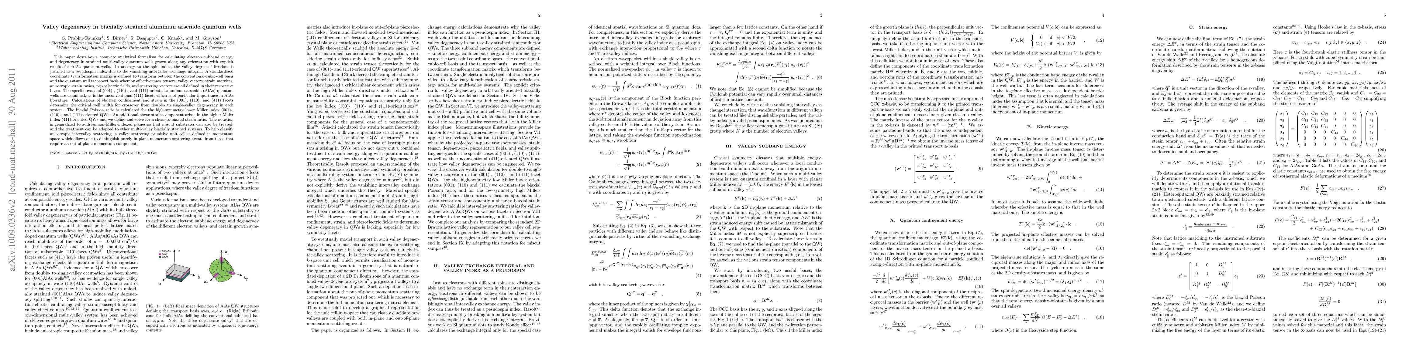 This research develops a formalism for calculating electron subband energy and degeneracy in biaxially strained aluminum arsenide quantum wells, identifying critical well widths for valley degeneracy transitions in various orientations, and introduces a new unit cell to classify inter-valley scattering events.