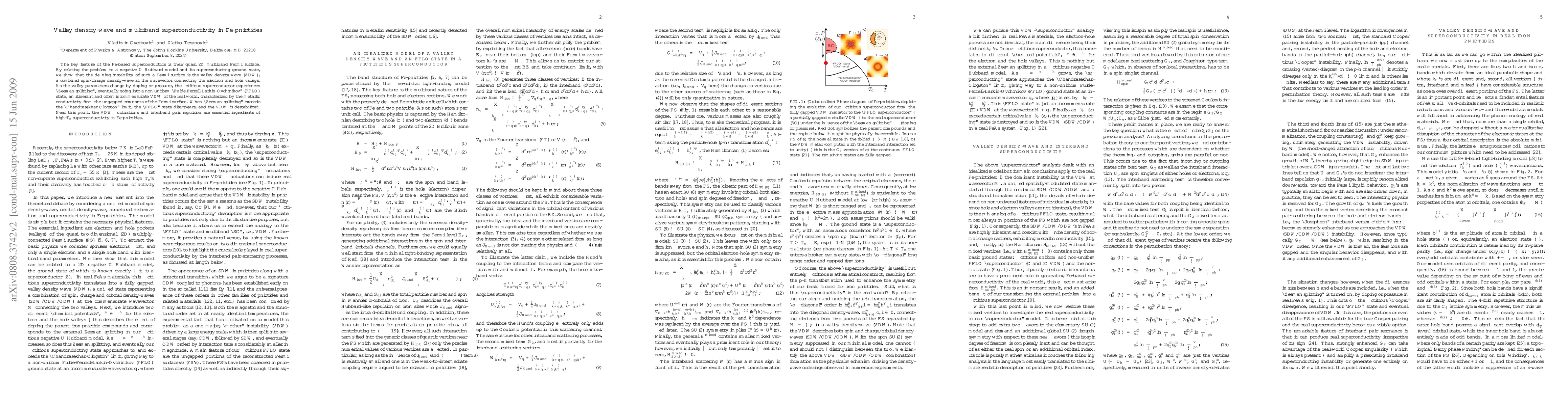 This paper explores the valley density-wave (VDW) instability in Fe-pnictides, revealing its role in multiband superconductivity. It demonstrates that doping or pressure can induce a transition to a Fulde-Ferrell-Larkin-Ovchinikov state, with high-Tc superconductivity emerging from VDW fluctuations and interband pair repulsion near the critical limit.