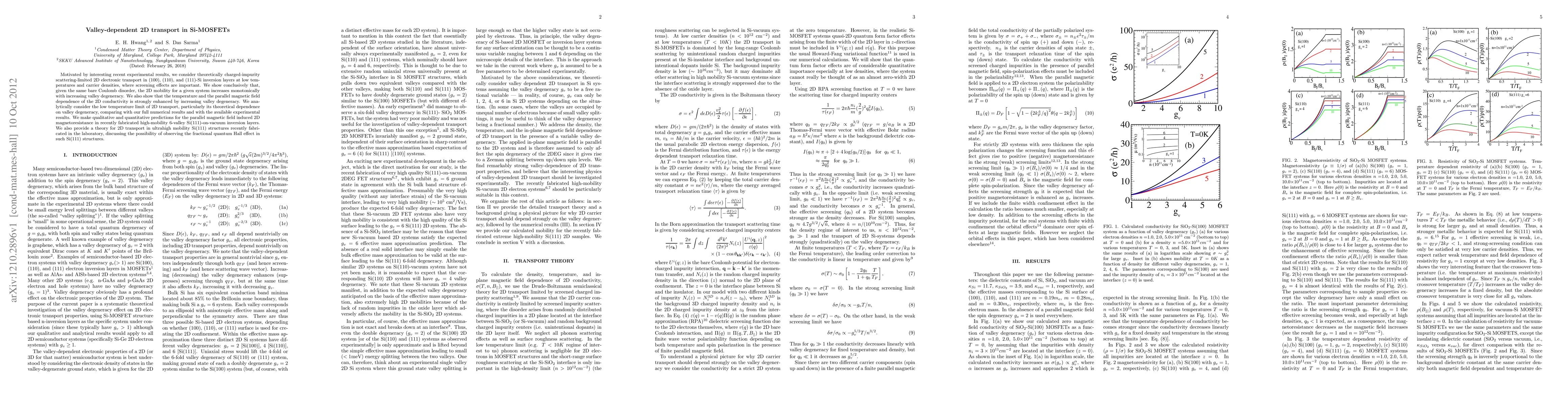 This paper theoretically investigates valley-dependent 2D transport in Si-MOSFETs, demonstrating that 2D mobility increases with higher valley degeneracy. It also predicts enhanced temperature and magnetic field dependence of 2D conductivity and discusses the potential for observing the fractional quantum Hall effect in high-mobility Si(111) structures.