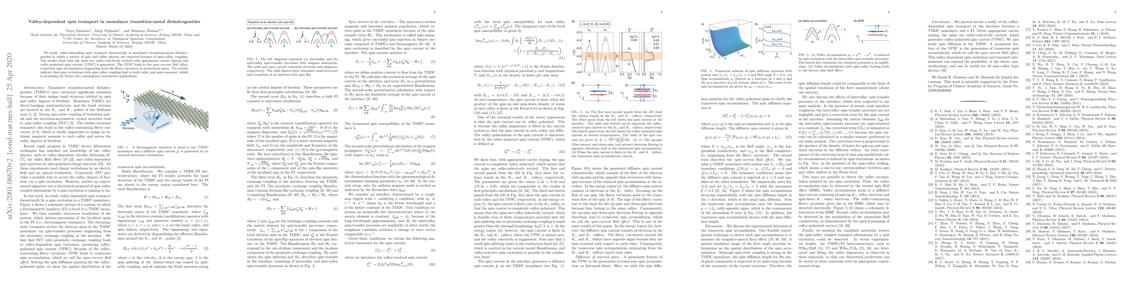 This study theoretically explores valley-dependent spin transport in monolayer transition-metal dichalcogenides, revealing that spin-valley coupling can generate valley polarized spin current and the spin-current Hall effect. These findings suggest potential for low-power nanodevice applications.
