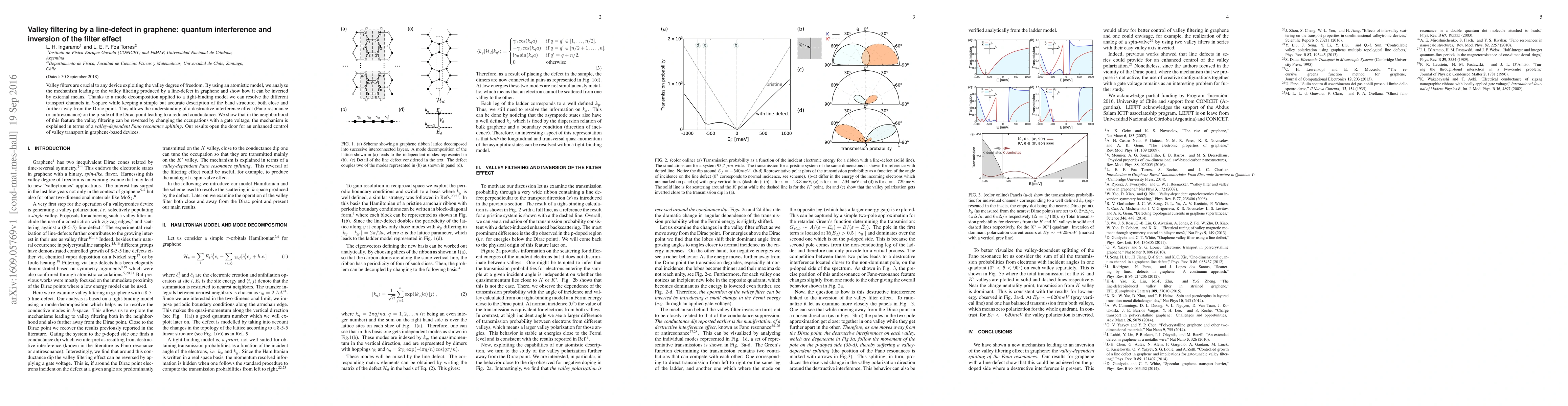 This paper investigates valley filtering in graphene via a line-defect, revealing a destructive interference effect that reduces conductance. The authors demonstrate that this filtering can be inverted by adjusting gate voltage, providing a pathway for enhanced control of valley transport in graphene devices.