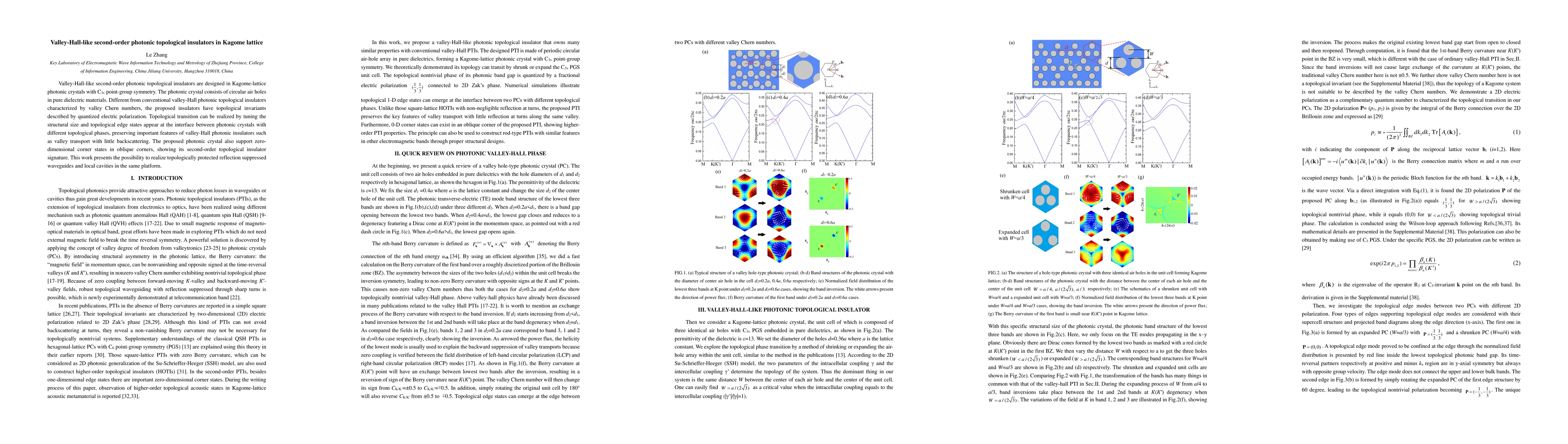 This paper proposes a photonic topological insulator in a Kagome lattice with C3v symmetry, characterized by quantized electric polarization instead of valley Chern numbers. The design features topological edge states and zero-dimensional corner states, enabling valley transport with minimal backscattering and potential for topologically protected waveguides and cavities.