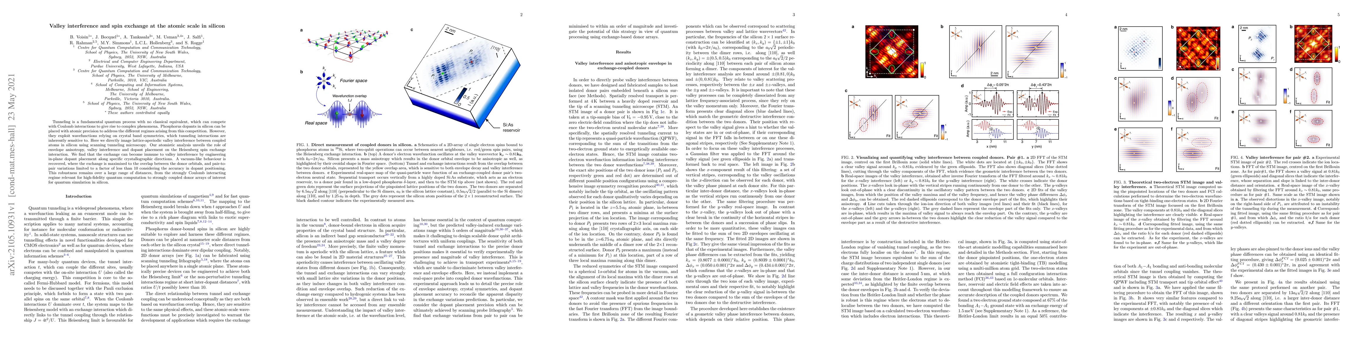 Tunneling is a fundamental quantum process with no classical equivalent, which can compete with Coulomb interactions to give rise to complex phenomena. Phosphorus dopants in silicon can be placed with atomic precision to address the different regimes arising from this competition. However, they exploit wavefunctions relying on crystal band symmetries, which tunneling interactions are inherently sensitive to. Here we directly image lattice-aperiodic valley interference between coupled atoms in silicon using scanning tunneling microscopy. Our atomistic analysis unveils the role of envelope anisotropy, valley interference and dopant placement on the Heisenberg spin exchange interaction. We find that the exchange can become immune to valley interference by engineering in-plane dopant placement along specific crystallographic directions. A vacuum-like behaviour is recovered, where the exchange is maximised to the overlap between the donor orbitals, and pair-to-pair variations limited to a factor of less than 10 considering the accuracy in dopant positioning. This robustness remains over a large range of distances, from the strongly Coulomb interacting regime relevant for high-fidelity quantum computation to strongly coupled donor arrays of interest for quantum simulation in silicon.