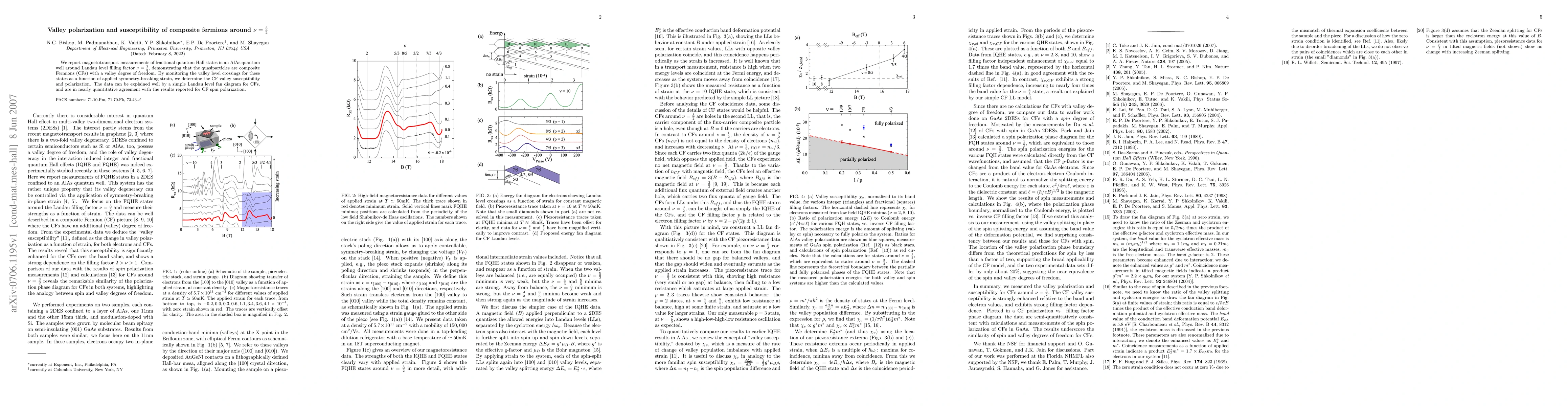 This paper reports magnetotransport measurements of fractional quantum Hall states near ν = 3/2, revealing that quasiparticles are composite fermions with valley degrees of freedom. The study determines the valley polarization and susceptibility of these composite fermions through applied symmetry-breaking strain, aligning well with a simple Landau level fan diagram.