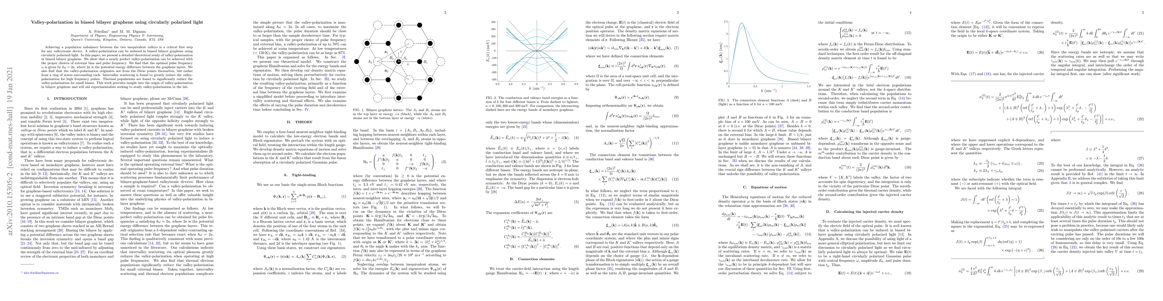 This paper presents a theoretical study on inducing valley-polarization in biased bilayer graphene using circularly polarized light, showing nearly perfect polarization can be achieved with optimal bias and pulse frequency. The work identifies key parameters for achieving this polarization and provides insights into its origins and limitations.
