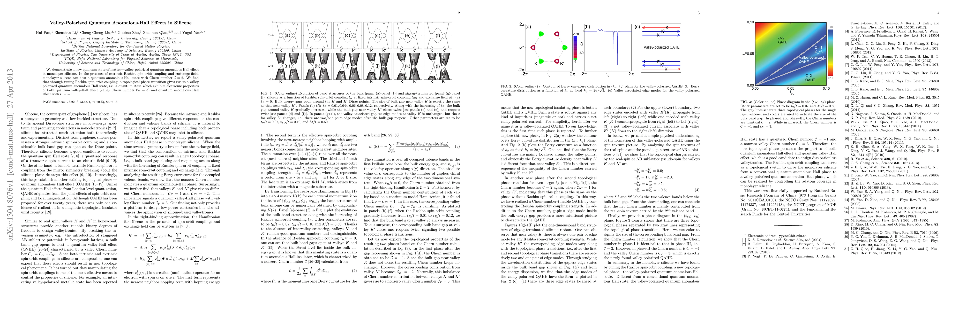 This study reveals a valley-polarized quantum anomalous-Hall effect in monolayer silicene, demonstrating a new quantum state of matter that combines quantum valley-Hall and quantum anomalous Hall effects. By tuning Rashba spin-orbit coupling, a topological phase transition leads to this unique state with combined Chern numbers C_V=3 and C=-1.