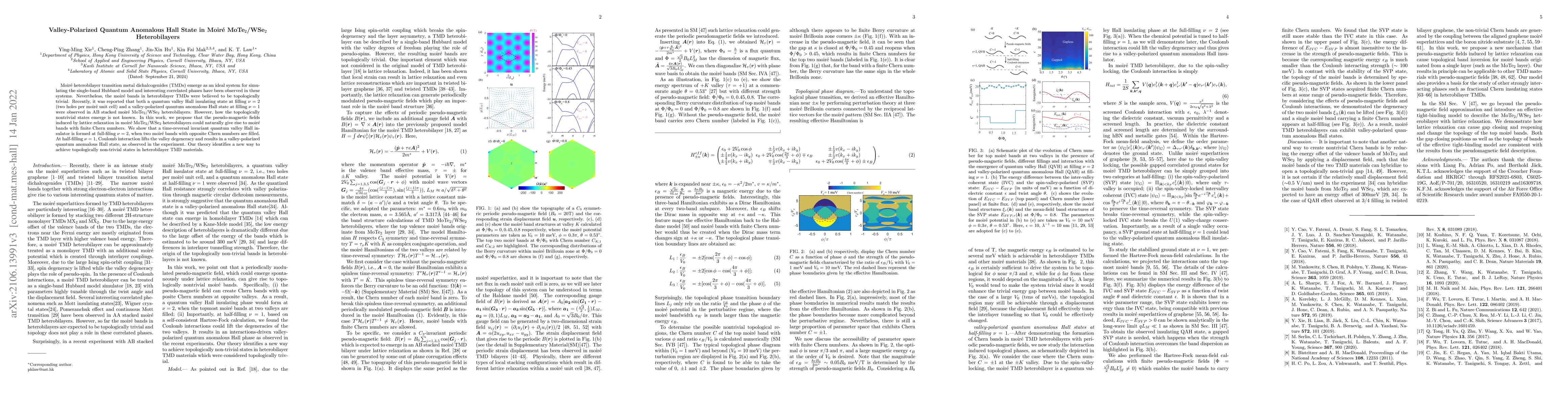This paper proposes that pseudo-magnetic fields from lattice relaxation in MoTe$_2$/WSe$_2$ moiré heterobilayers create topologically nontrivial moiré bands, resulting in a quantum valley Hall state at $\nu=2$ and a valley-polarized quantum anomalous Hall state at $\nu=1$, explaining the observed phenomena in experimental observations.