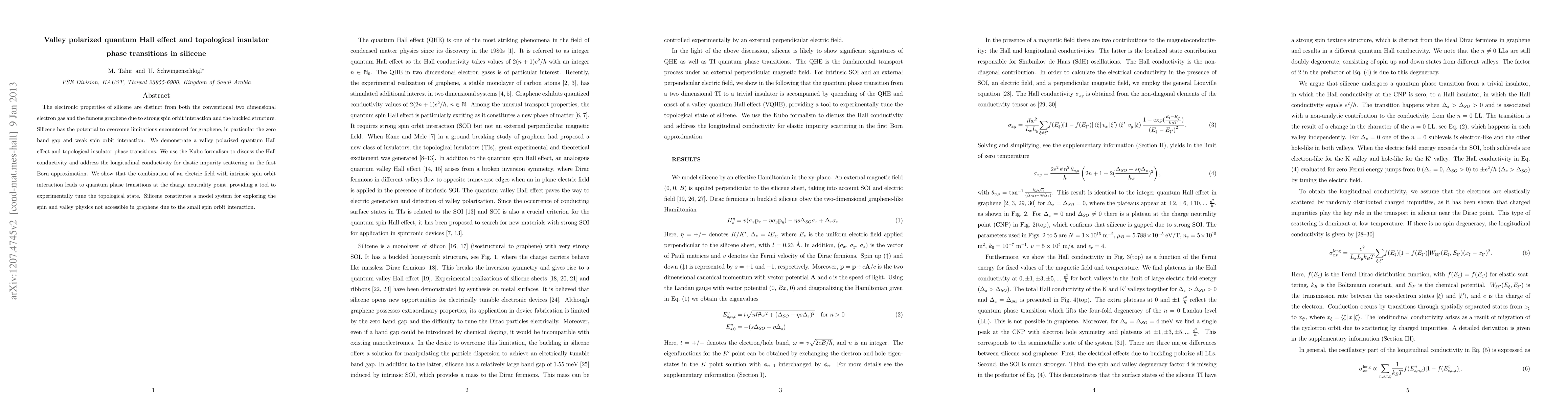 Silicene, a buckled silicon monolayer, exhibits a valley polarized quantum Hall effect and topological insulator phase transitions due to its unique spin-orbit interaction and structure. Researchers demonstrate that combining an electric field with intrinsic spin-orbit coupling can induce quantum phase transitions at the charge neutrality point, offering a method to experimentally manipulate silicene's topological state.