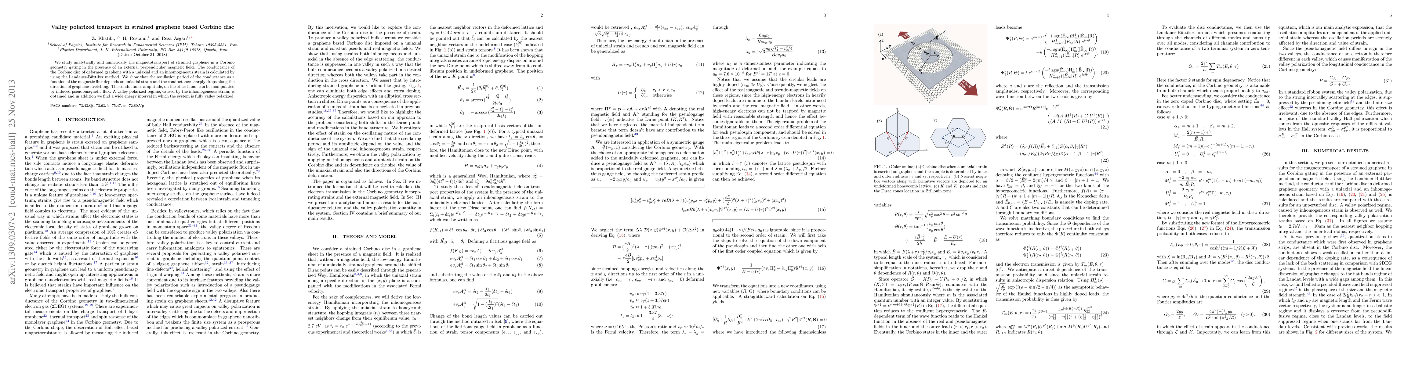 This paper investigates magnetotransport in strained graphene within a Corbino disc geometry, revealing that uniaxial strain affects the oscillation period of conductance and induces valley polarization. The conductance amplitude can be controlled via pseudomagnetic flux, and a wide energy interval exists where the system exhibits full valley polarization.