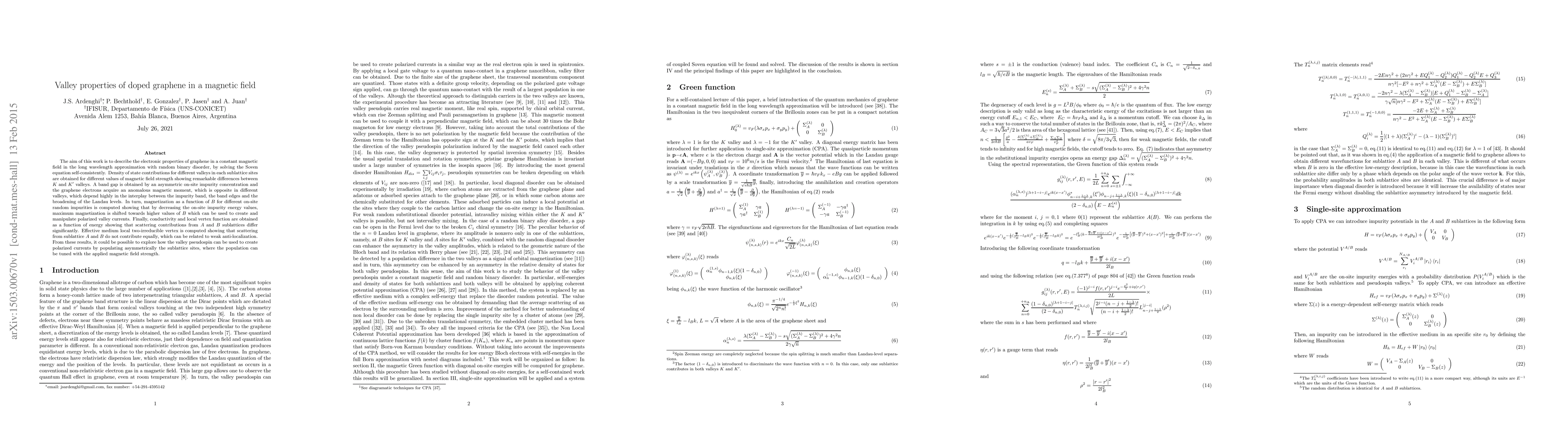 The aim of this work is to describe the electronic properties of graphene in a constant magnetic field in the long wavelength approximation with random binary disorder, by solving the Soven equation self-consistently. Density of state contributions for different valleys in each sublattice sites are obtained for different values of magnetic field strength showing remarkable differences between K and K' valleys. A band gap is obtained by an asymmetric on-site impurity concentration and the graphene electrons acquire an anomalous magnetic moment, which is opposite in different valleys, which depend highly in the interplay between the impurity band, the band edges and the broadening of the Landau levels. In turn, magnetization as a function of B for different on-site random impurities is computed showing that by decreasing the on-site impurity energy values, maximum magnetization is shifted towards higher values of B which can be used to create and manipulate polarized valley currents. Finally, conductivity and local vertex function are obtained as a function of energy showing that scattering contributions from A and B sublattices differ significantly. Effective medium local two-irreducible vertex is computed showing that scattering from sublattices A and B do not contribute equally, which can be related to weak anti-localization. From these results, it could be possible to explore how the valley pseudospin can be used to create polarized currents by populating asymmetrically the sublattice sites, where the population can be tuned with the applied magnetic field strength.