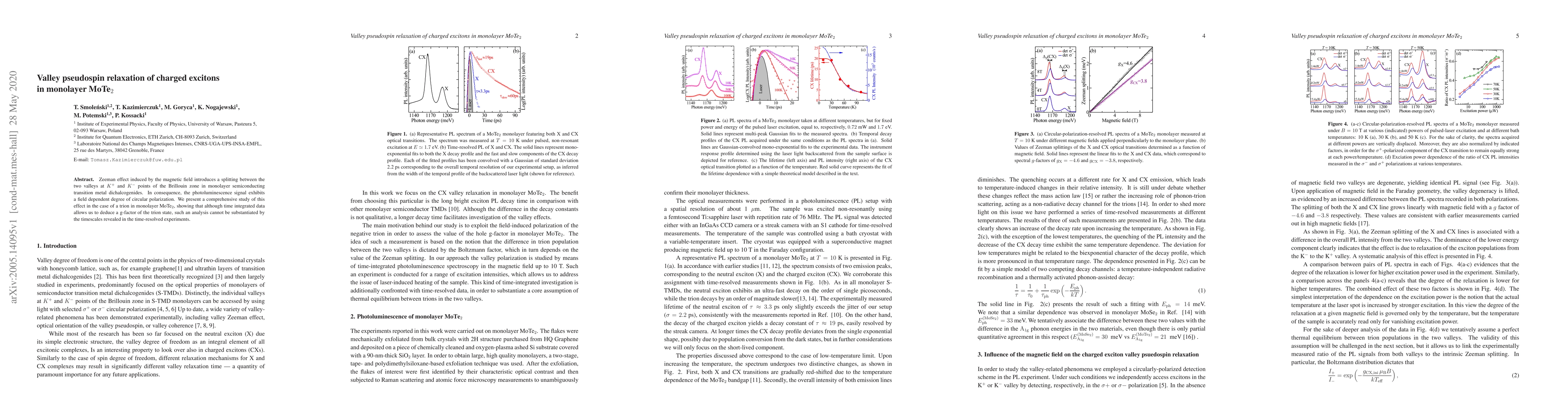 Zeeman effect induced by the magnetic field introduces a splitting between the two valleys at K$^+$ and K$^-$ points of the Brillouin zone in monolayer semiconducting transition metal dichalcogenides. In consequence, the photoluminescence signal exhibits a field dependent degree of circular polarization. We present a comprehensive study of this effect in the case of a trion in monolayer MoTe$_2$, showing that although time integrated data allows us to deduce a g-factor of the trion state, such an analysis cannot be substantiated by the timescales revealed in the time-resolved experiments.