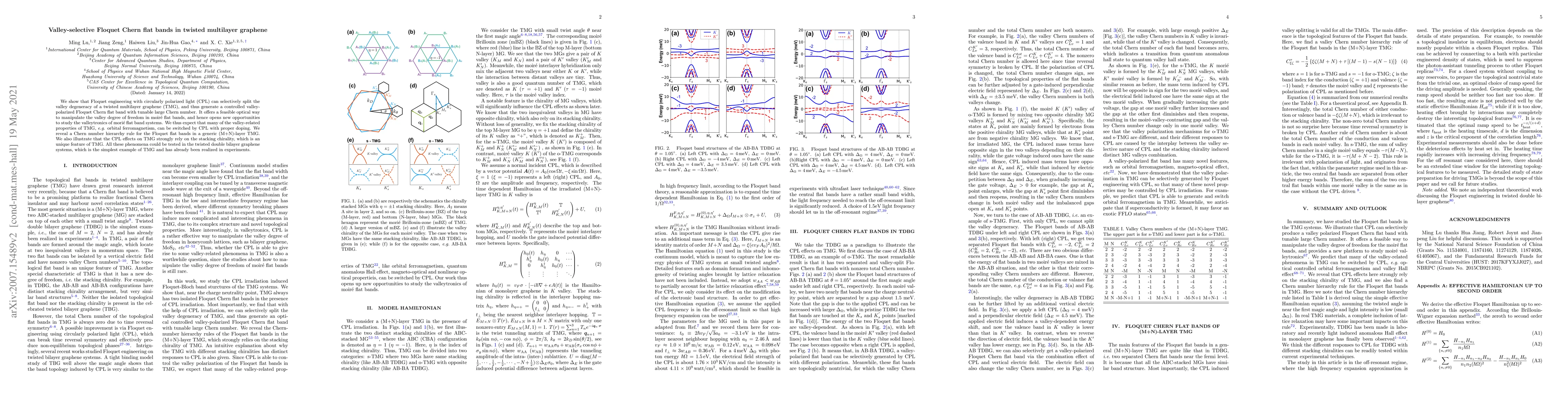 This paper demonstrates how circularly polarized light can selectively split valley degeneracy in twisted multilayer graphene to create a tunable valley-polarized Floquet Chern flat band, enabling new valleytronics research and potentially switching valley-related properties like orbital ferromagnetism. It also identifies a Chern number hierarchy rule and highlights the impact of stacking chirality in twisted multilayer graphene systems.