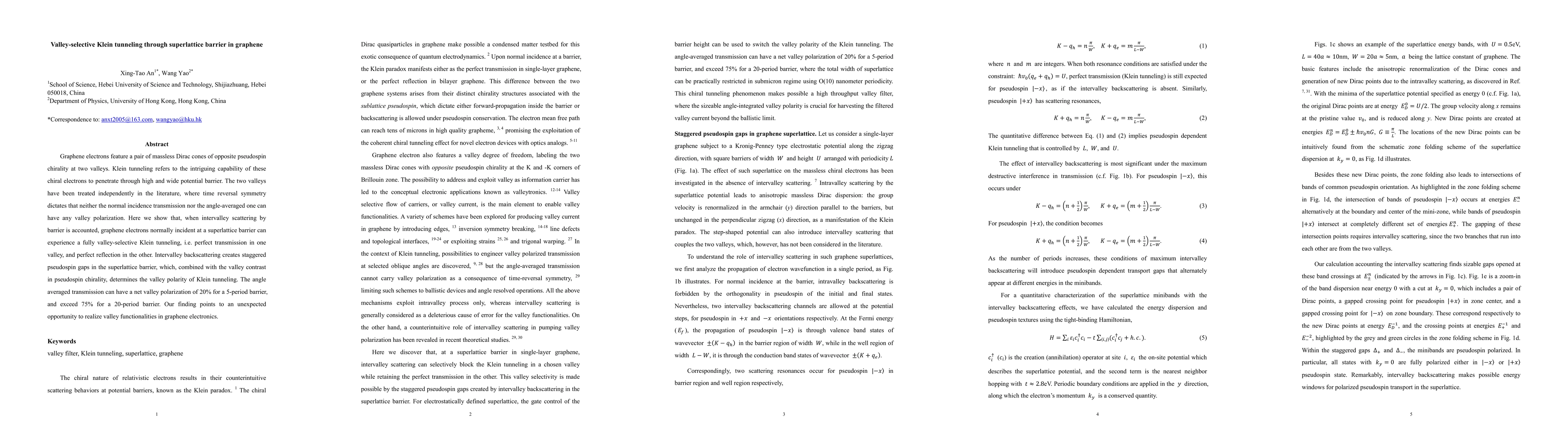 Researchers demonstrate valley-selective Klein tunneling in graphene electrons through a superlattice barrier, revealing perfect transmission in one valley and reflection in the other due to intervalley scattering. This discovery enables potential valley functionalities in graphene electronics.