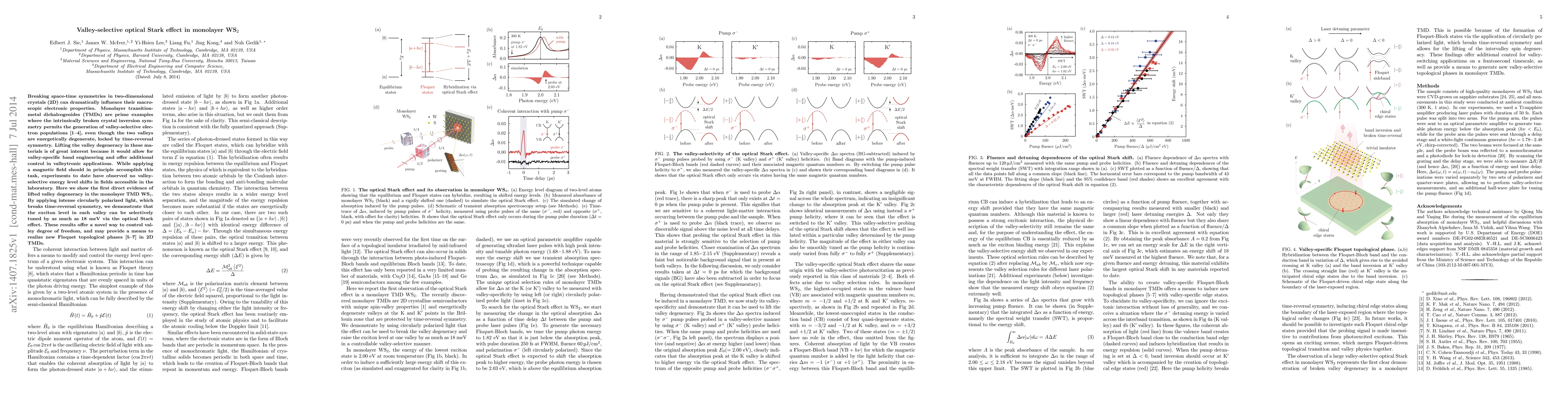 This paper demonstrates the first direct evidence of lifted valley degeneracy in monolayer WS2 using intense circularly polarized light, achieving valley-selective tuning via the optical Stark effect. This breakthrough offers a novel method for controlling the valley degree of freedom in 2D materials.