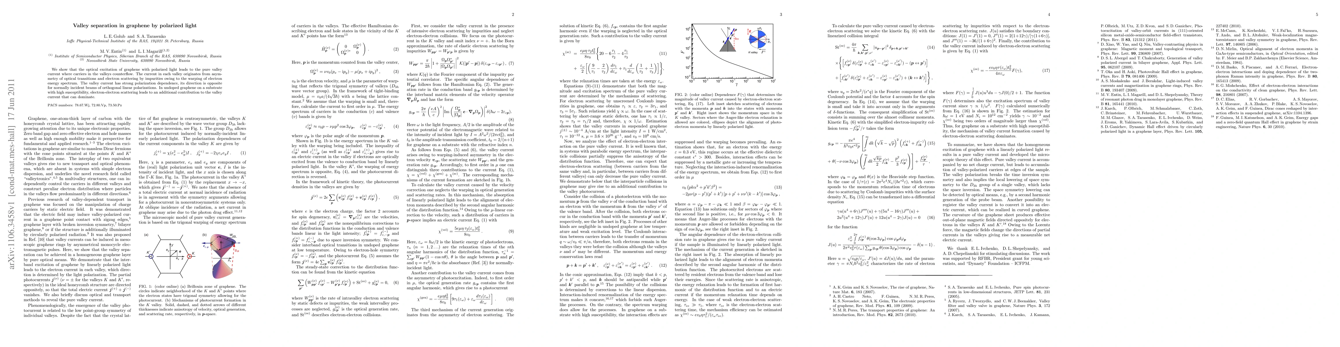 This paper demonstrates that polarized light can induce a pure valley current in graphene, with carriers counterflowing in the valleys due to optical excitation asymmetry and impurity scattering. The valley current exhibits strong polarization dependence, with opposite directions for orthogonal linear polarizations, and can be significantly enhanced by electron-electron scattering in undoped graphene on a high susceptibility substrate.