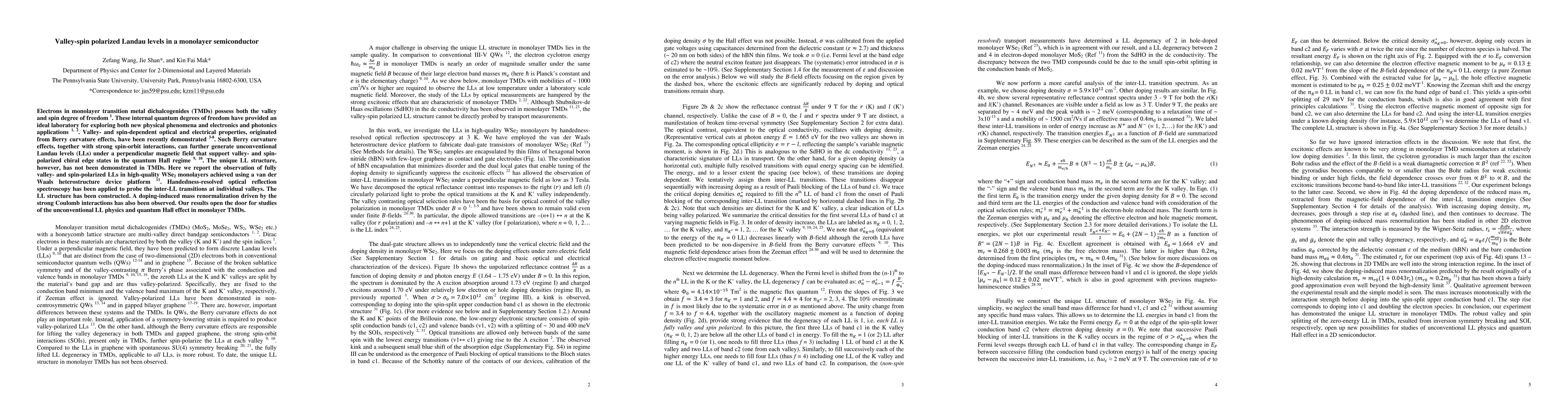 Electrons in monolayer transition metal dichalcogenides (TMDs) possess both the valley and spin degree of freedom. These internal quantum degrees of freedom have provided an ideal laboratory for exploring both new physical phenomena and electronics and photonics applications. Valley- and spin-dependent optical and electrical properties, originated from Berry curvature effects, have been recently demonstrated. Such Berry curvature effects, together with strong spin-orbit interactions, can further generate unconventional Landau levels (LLs) under a perpendicular magnetic field that support valley- and spinpolarized chiral edge states in the quantum Hall regime. The unique LL structure, however, has not been demonstrated in TMDs. Here we report the observation of fully valley- and spin-polarized LLs in high-quality WSe2 monolayers achieved using a van der Waals heterostructure device platform. Handedness-resolved optical reflection spectroscopy has been applied to probe the inter-LL transitions at individual valleys. The LL structure has been constructed. A doping-induced mass renormalization driven by the strong Coulomb interactions has also been observed. Our results open the door for studies of the unconventional LL physics and quantum Hall effect in monolayer TMDs.