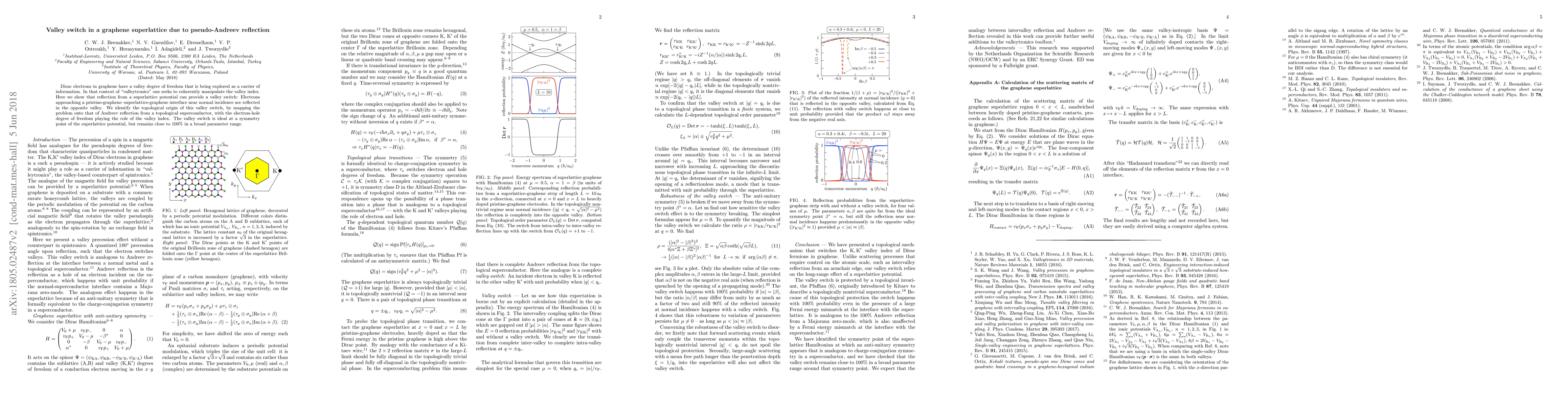 This research demonstrates a valley switch in graphene superlattices via pseudo-Andreev reflection, where electrons reflect at a graphene-superlattice interface and change valley states. The topological nature of this effect is analogous to Andreev reflection in topological superconductors, achieving near-perfect valley switching over a wide range of parameters.