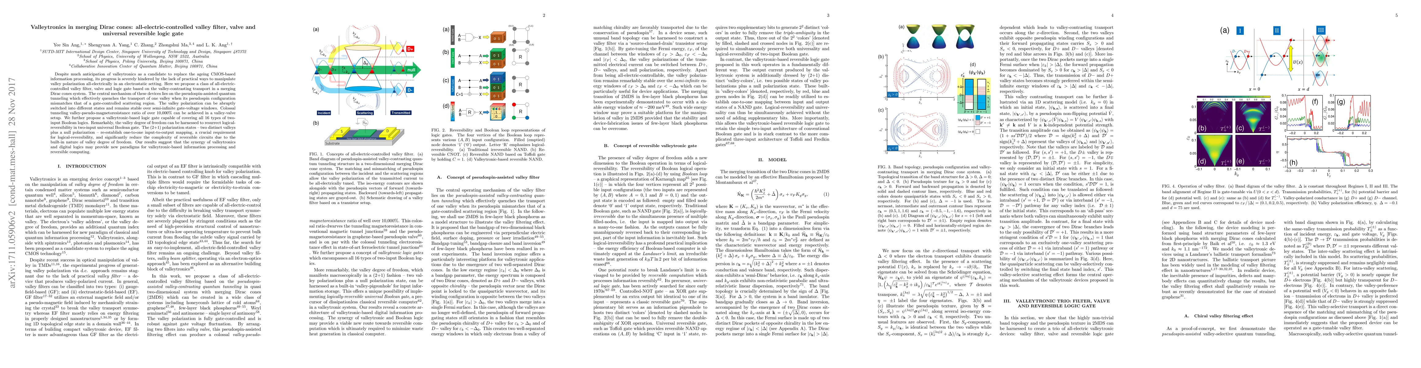 This research proposes all-electric-controlled valley filter, valve, and logic gate using merging Dirac cones system, leveraging pseudospin-assisted quantum tunneling for valley polarization manipulation. The devices demonstrate colossal valley-pseudo-magnetoresistance and enable a reversible logic gate, suggesting new paradigms for valleytronic-based information processing and reversible computing.