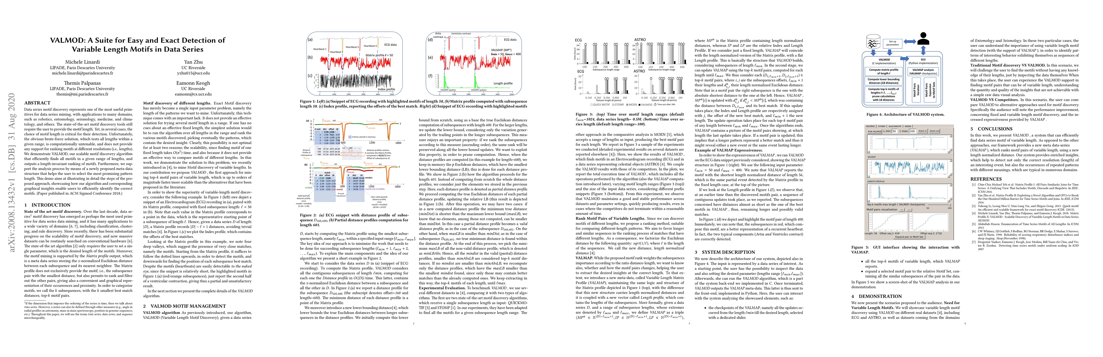 Data series motif discovery represents one of the most useful primitives for data series mining, with applications to many domains, such as robotics, entomology, seismology, medicine, and climatology, and others. The state-of-the-art motif discovery tools still require the user to provide the motif length. Yet, in several cases, the choice of motif length is critical for their detection. Unfortunately, the obvious brute-force solution, which tests all lengths within a given range, is computationally untenable, and does not provide any support for ranking motifs at different resolutions (i.e., lengths). We demonstrate VALMOD, our scalable motif discovery algorithm that efficiently finds all motifs in a given range of lengths, and outputs a length-invariant ranking of motifs. Furthermore, we support the analysis process by means of a newly proposed meta-data structure that helps the user to select the most promising pattern length. This demo aims at illustrating in detail the steps of the proposed approach, showcasing how our algorithm and corresponding graphical insights enable users to efficiently identify the correct motifs. (Paper published in ACM Sigmod Conference 2018.)