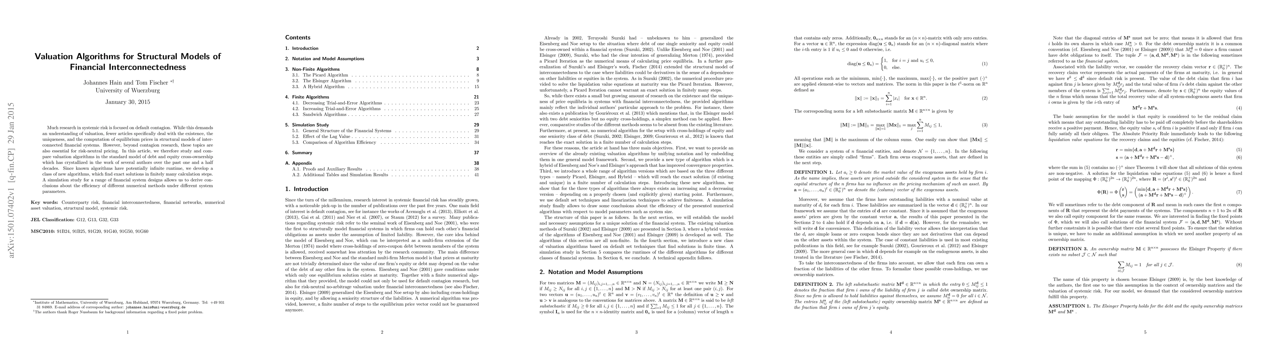 Much research in systemic risk is focused on default contagion. While this demands an understanding of valuation, fewer articles specifically deal with the existence, the uniqueness, and the computation of equilibrium prices in structural models of interconnected financial systems. However, beyond contagion research, these topics are also essential for risk-neutral pricing. In this article, we therefore study and compare valuation algorithms in the standard model of debt and equity cross-ownership which has crystallized in the work of several authors over the past one and a half decades. Since known algorithms have potentially infinite runtime, we develop a class of new algorithms, which find exact solutions in finitely many calculation steps. A simulation study for a range of financial system designs allows us to derive conclusions about the efficiency of different numerical methods under different system parameters.