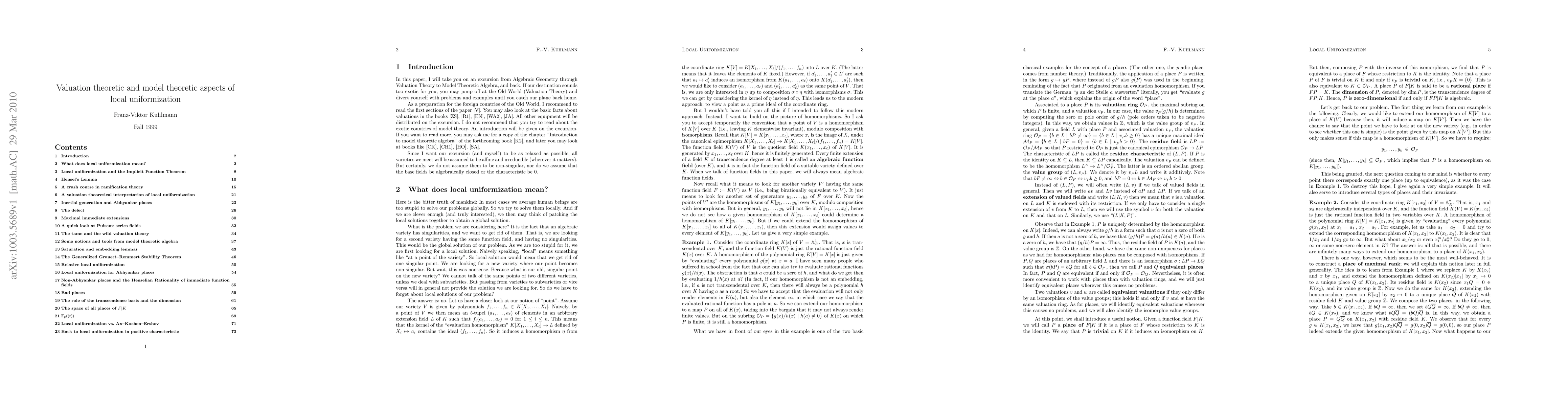 This paper explores how valuation theory can help understand local uniformization in positive characteristic, a concept in model theory of valued fields. It examines the connection between this phenomenon and valuation theory's notion of defect.
