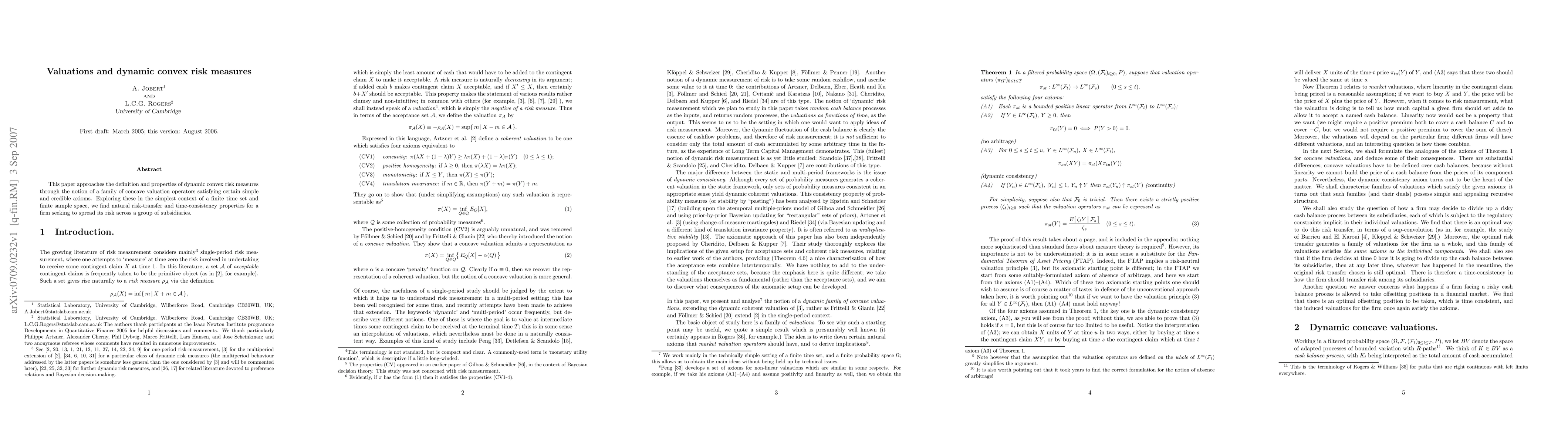 This paper approaches the definition and properties of dynamic convex risk measures through the notion of a family of concave valuation operators satisfying certain simple and credible axioms. Exploring these in the simplest context of a finite time set and finite sample space, we find natural risk-transfer and time-consistency properties for a firm seeking to spread its risk across a group of subsidiaries.