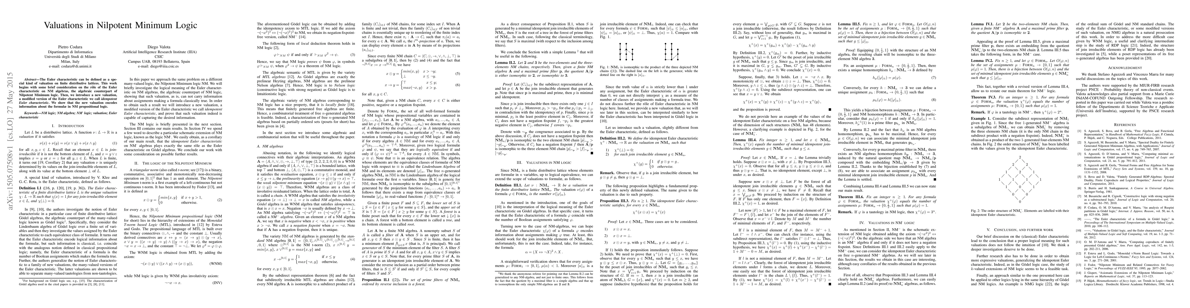 This paper explores valuations in Nilpotent Minimum (NM) logic, introducing a modified Euler characteristic called the idempotent Euler characteristic that encodes information about NM propositional logic formulas, building on the role of the Euler characteristic in NM algebras.