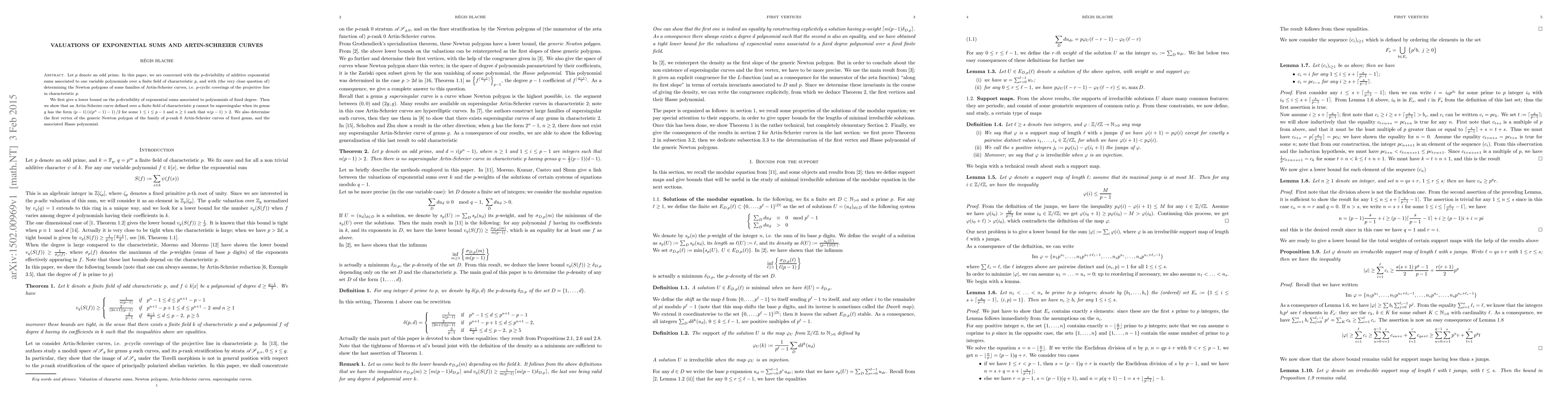 Let $p$ denote an odd prime. In this paper, we are concerned with the $p$-divisibility of additive exponential sums associated to one variable polynomials over a finite field of characteristic $p$, and with (the very close question of) determining the Newton polygons of some families of Artin-Schreier curves, i.e. $p$-cyclic coverings of the projective line in characteristic $p$. We first give a lower bound on the $p$-divisibility of exponential sums associated to polynomials of fixed degree. Then we show that an Artin-Schreier curve defined over a finite field of characteristic $p$ cannot be supersingular when its genus $g$ has the form $(p-1)\left(i(p^n-1)-1\right)/2$ for some $1\leq i\leq p-1$ and $n\geq 1$ such that $n(p-1)>2$. We also determine the first vertex of the generic Newton polygon of the family of $p$-rank $0$ Artin-Schreier curves of fixed genus, and the associated Hasse polynomial.