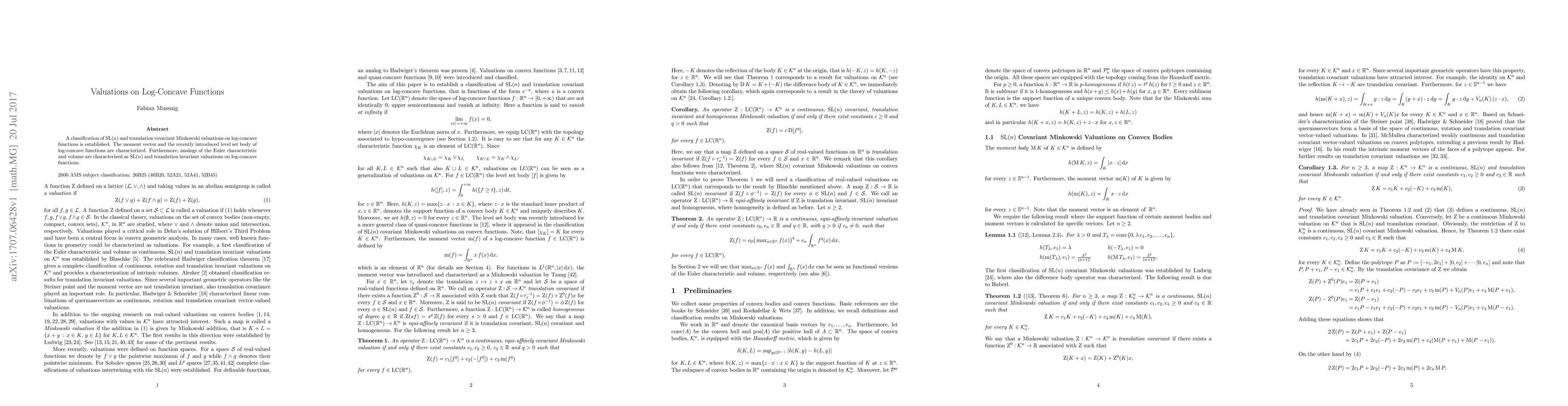 This paper classifies Minkowski valuations on log-concave functions that are invariant under $\operatorname{SL}(n)$ and translations. It characterizes the moment vector and level set body for these functions, and establishes $\operatorname{SL}(n)$ and translation invariant valuations analogous to the Euler characteristic and volume.