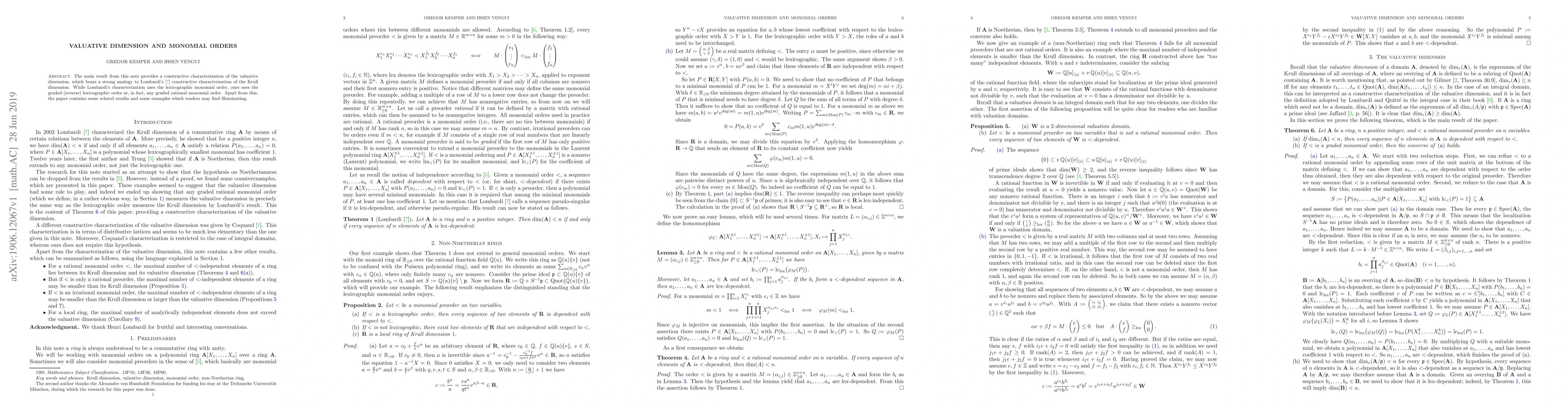 The main result from this note provides a constructive characterization of the valuative dimension, which bears a strong analogy to Lombardi's constructive characterization of the Krull dimension. While Lombardi's characterization uses the lexicographic monomial order, ours uses the graded (reverse) lexicographic order or, in fact, any graded rational monomial order. Apart from this, the paper contains some related results and some examples which readers may find illuminating.